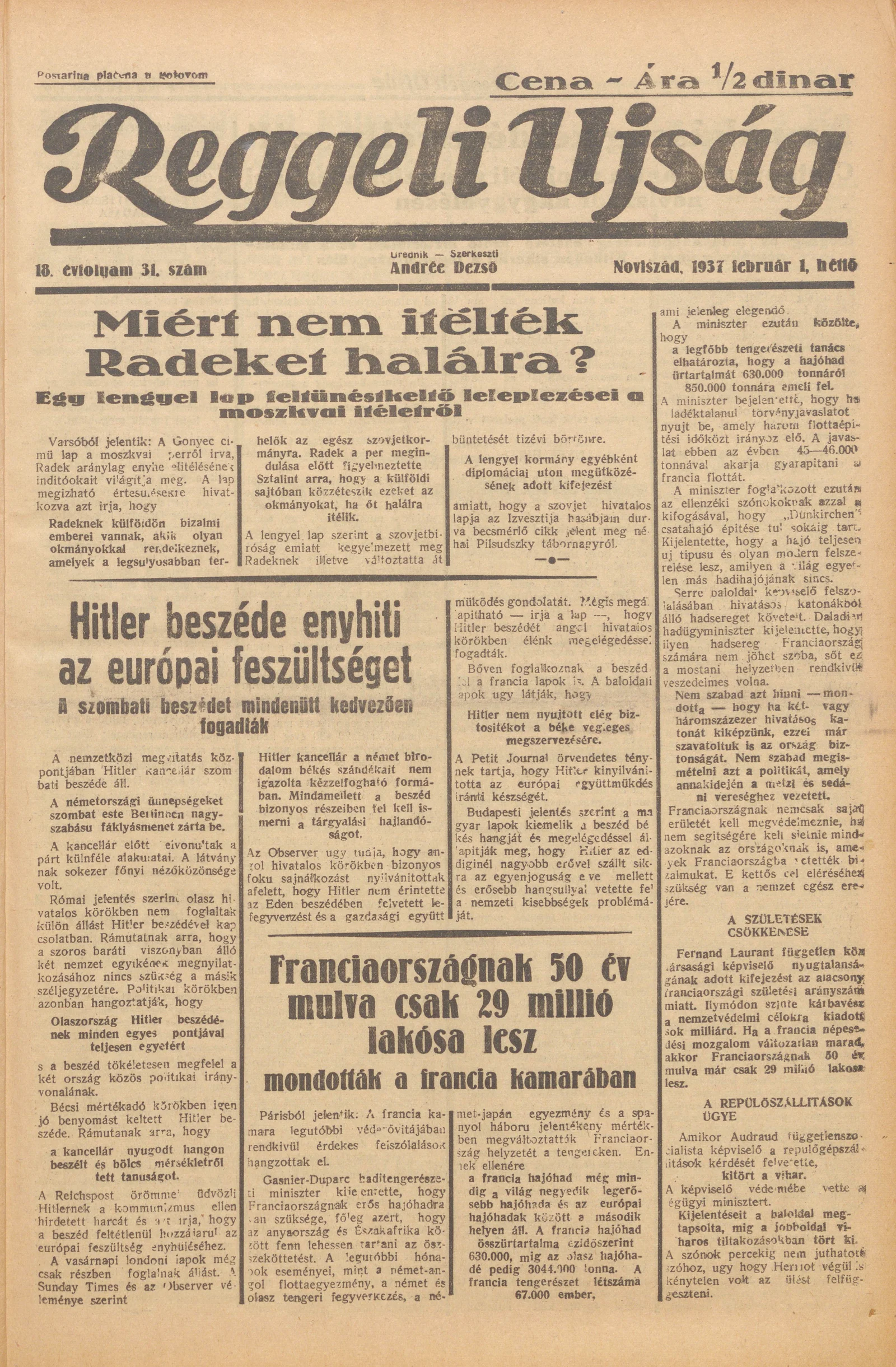 Reggeli Újság, 18. évf. 1937. február 1. 31. sz.