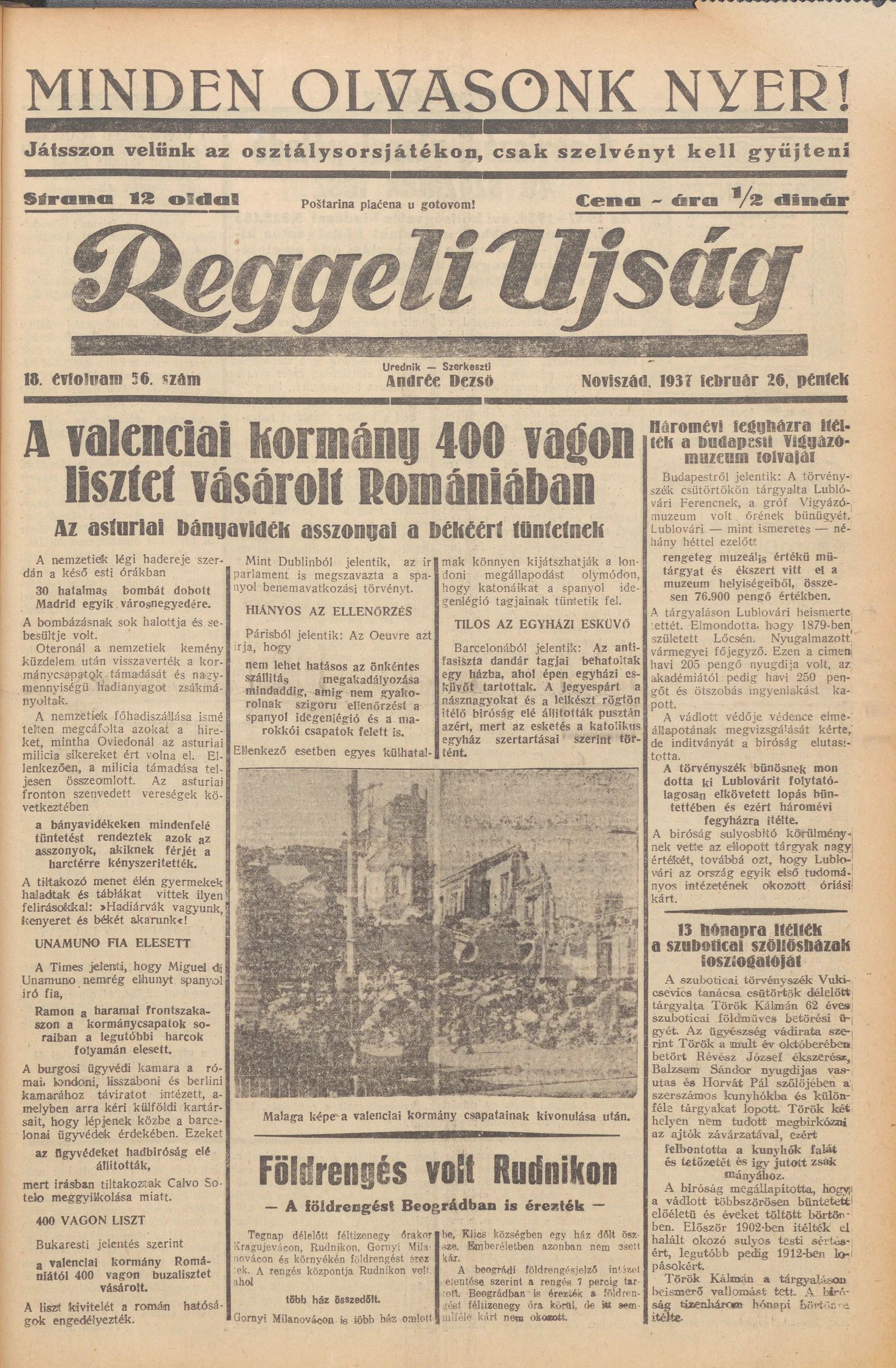 Reggeli Újság, 18. évf. 1937. február 26. 56. sz.