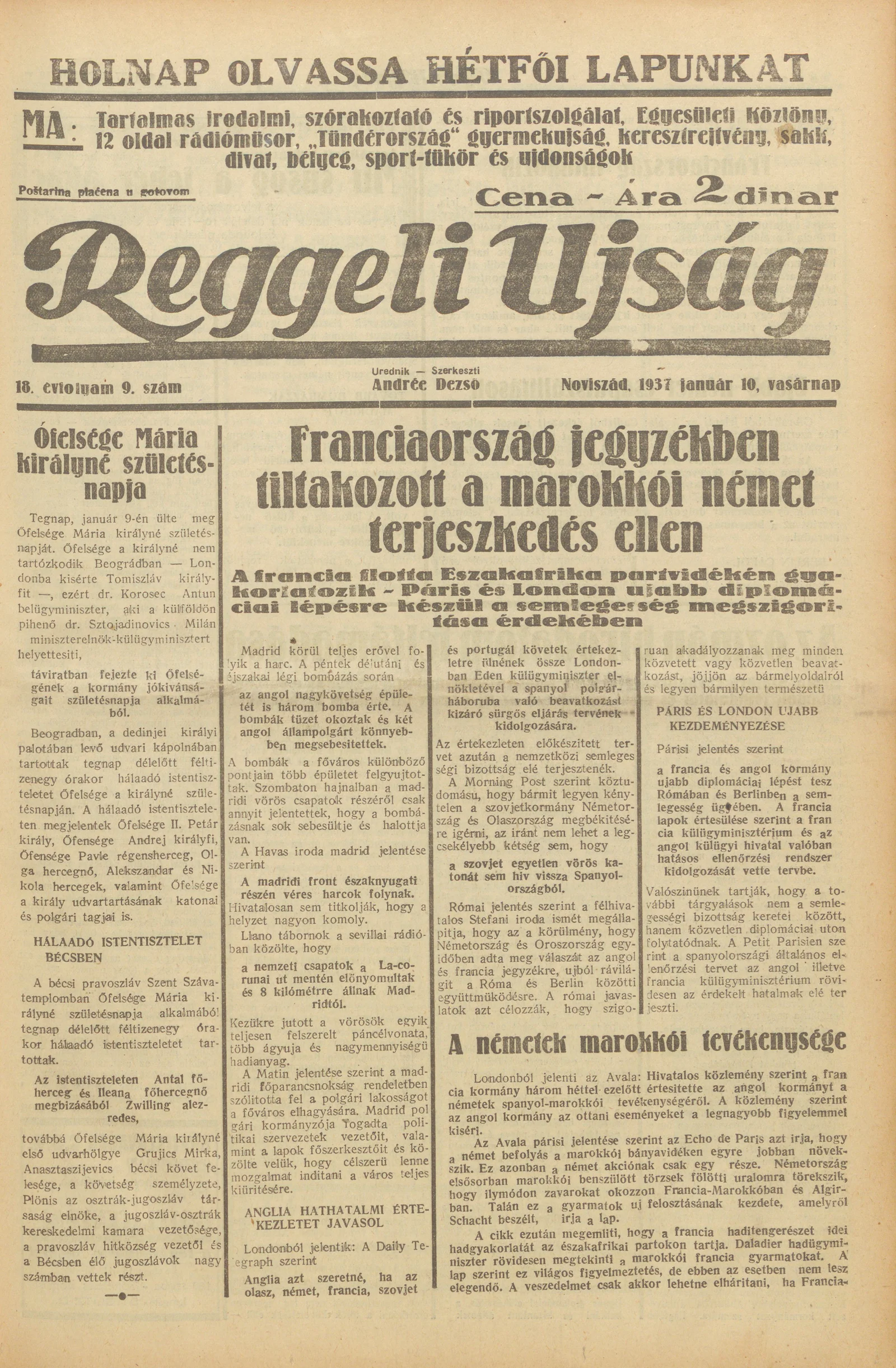 Reggeli Újság, 18. évf. 1937. január 10. 9. sz.