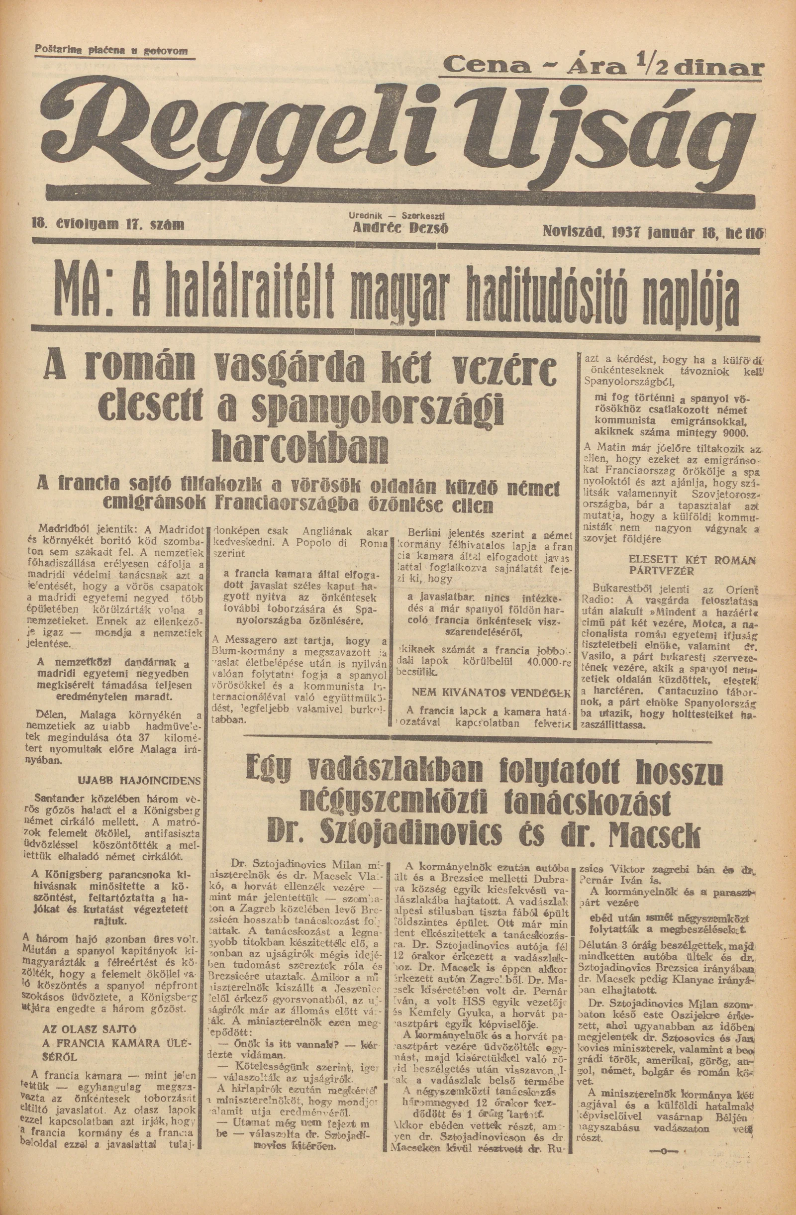 Reggeli Újság, 18. évf. 1937. január 18. 17. sz.
