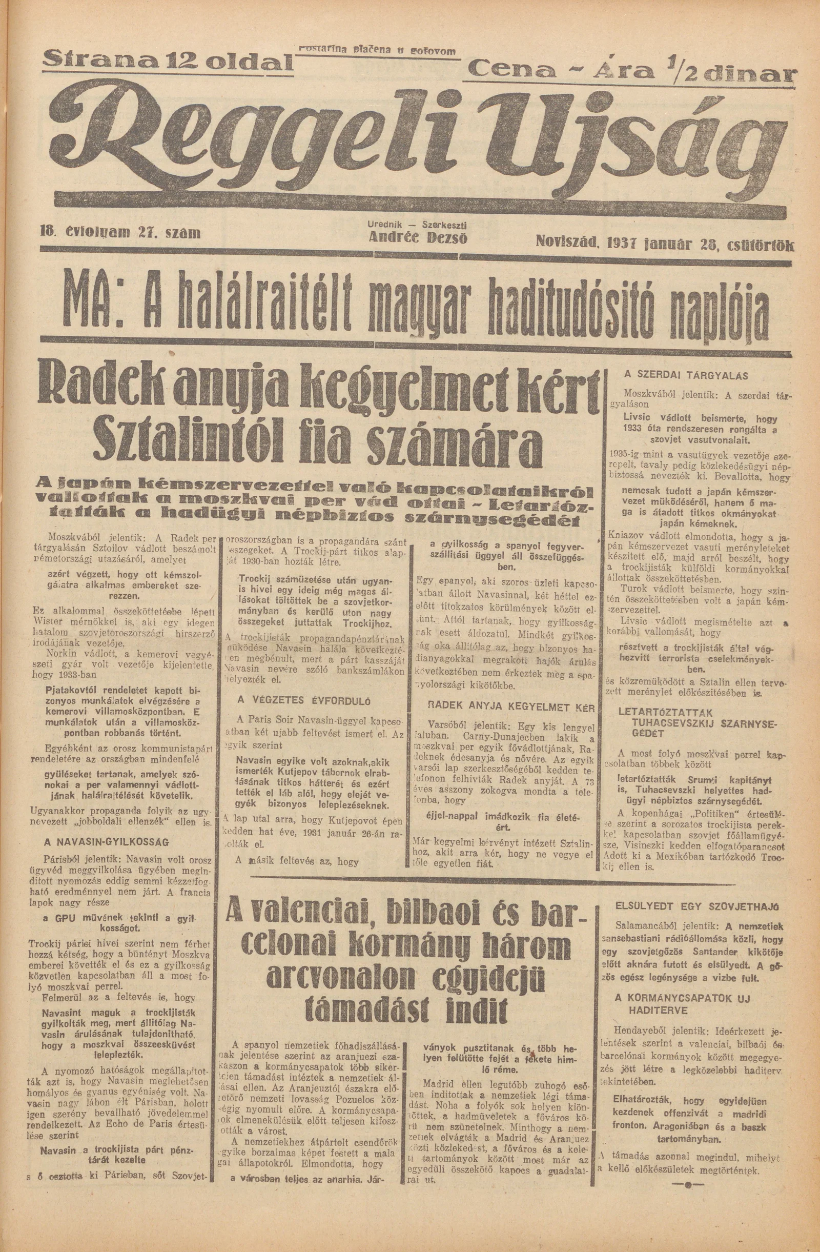 Reggeli Újság, 18. évf. 1937. január 28. 27. sz.
