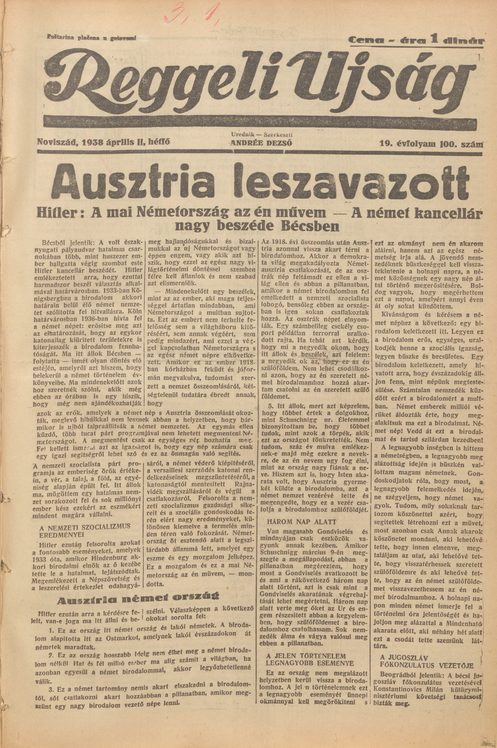 Reggeli Újság, 19. évf. 1938. április 11. 100. sz.