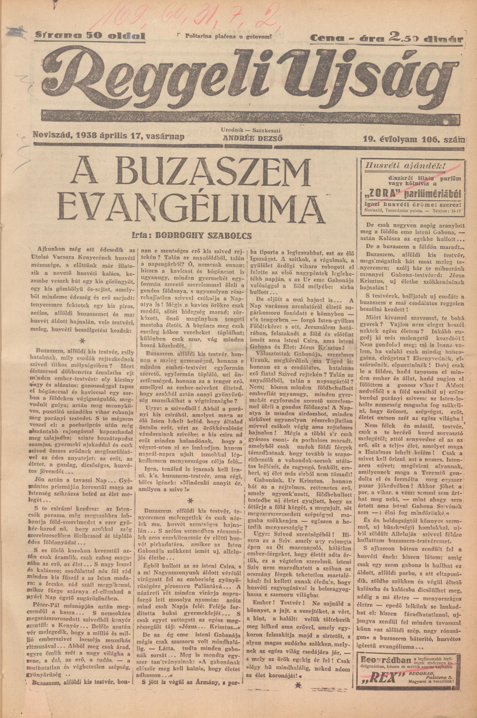 Reggeli Újság, 19. évf. 1938. április 17. 106. sz.