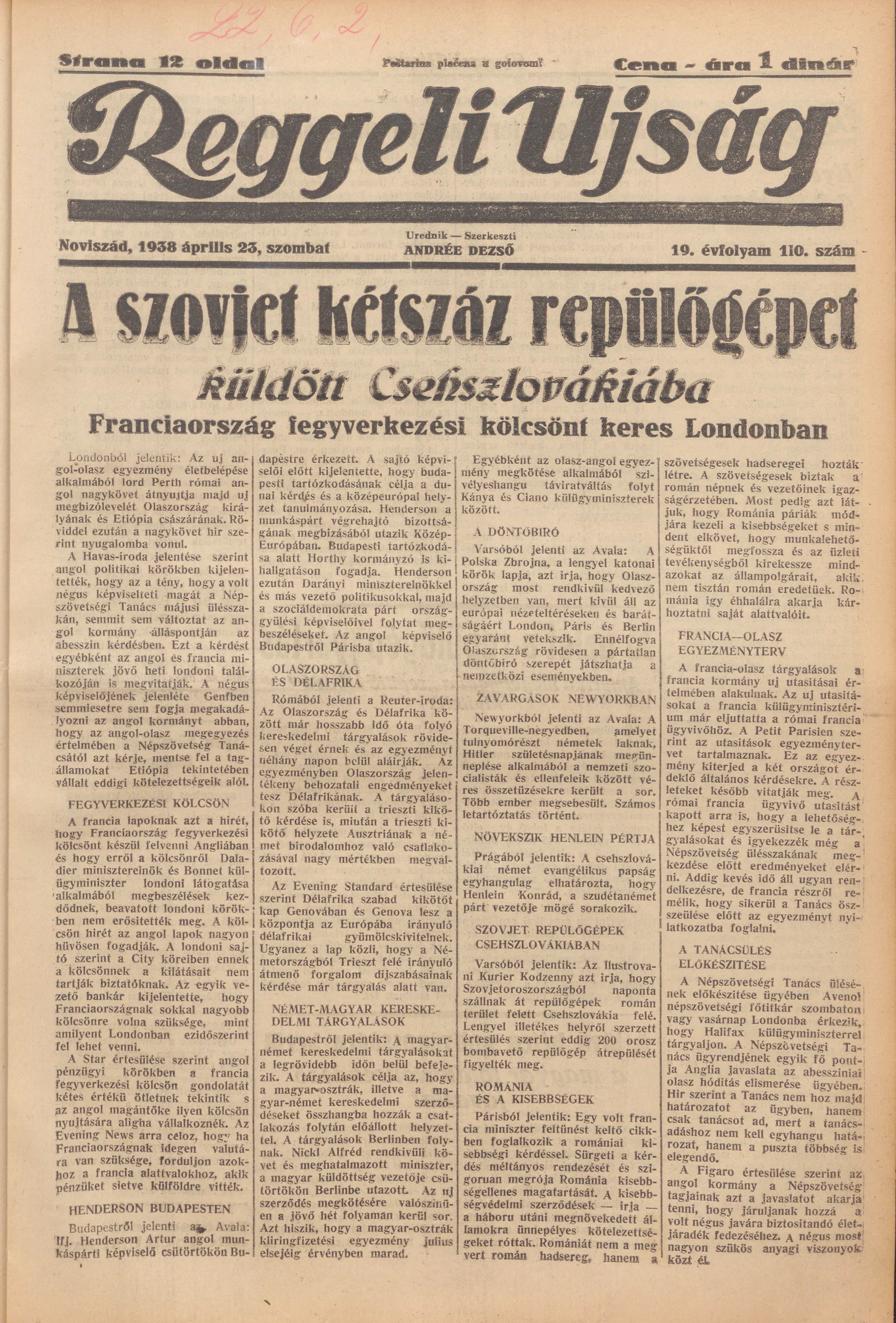 Reggeli Újság, 19. évf. 1938. április 23. 110. sz.