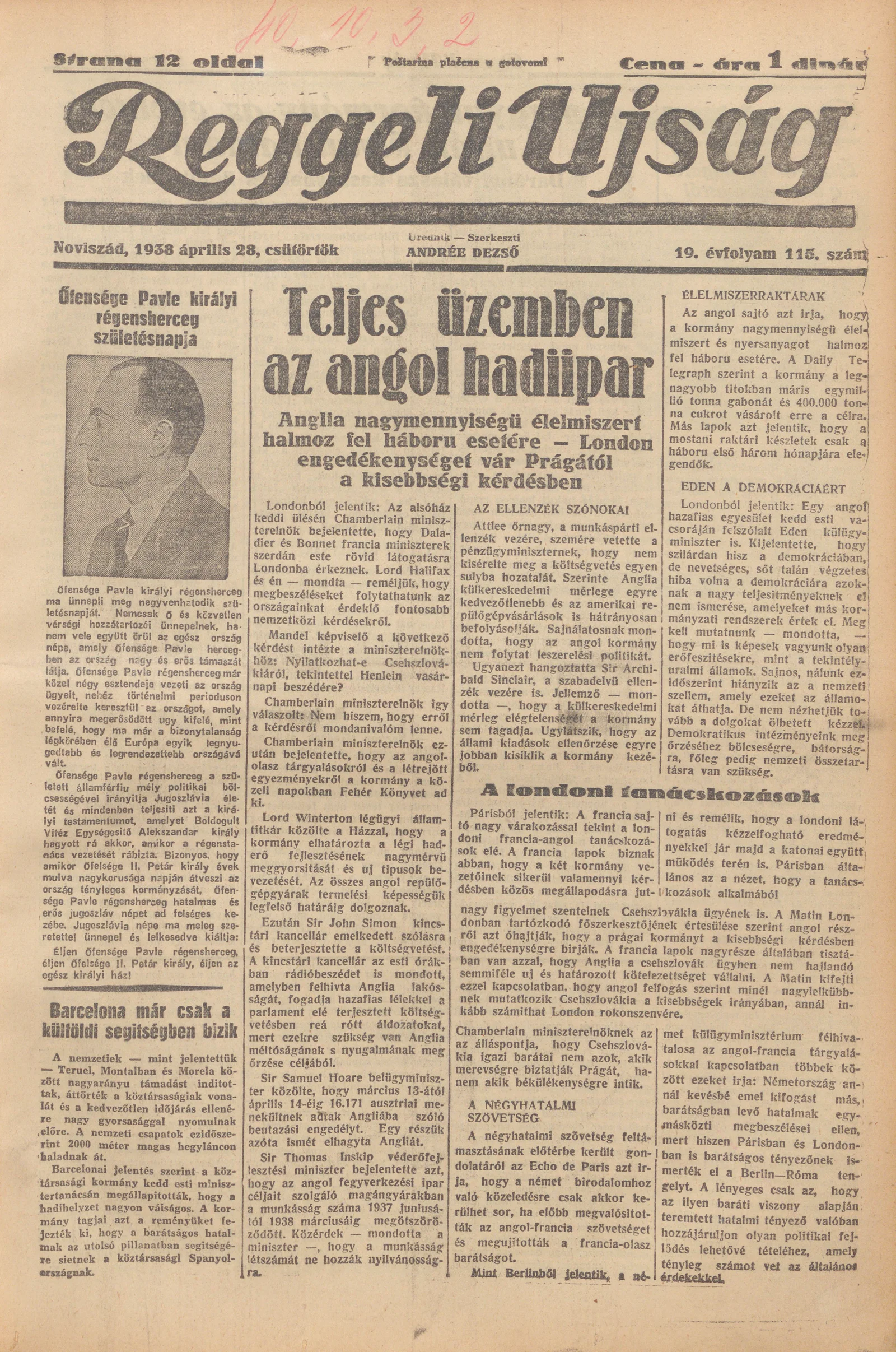 Reggeli Újság, 19. évf. 1938. április 28. 115. sz.