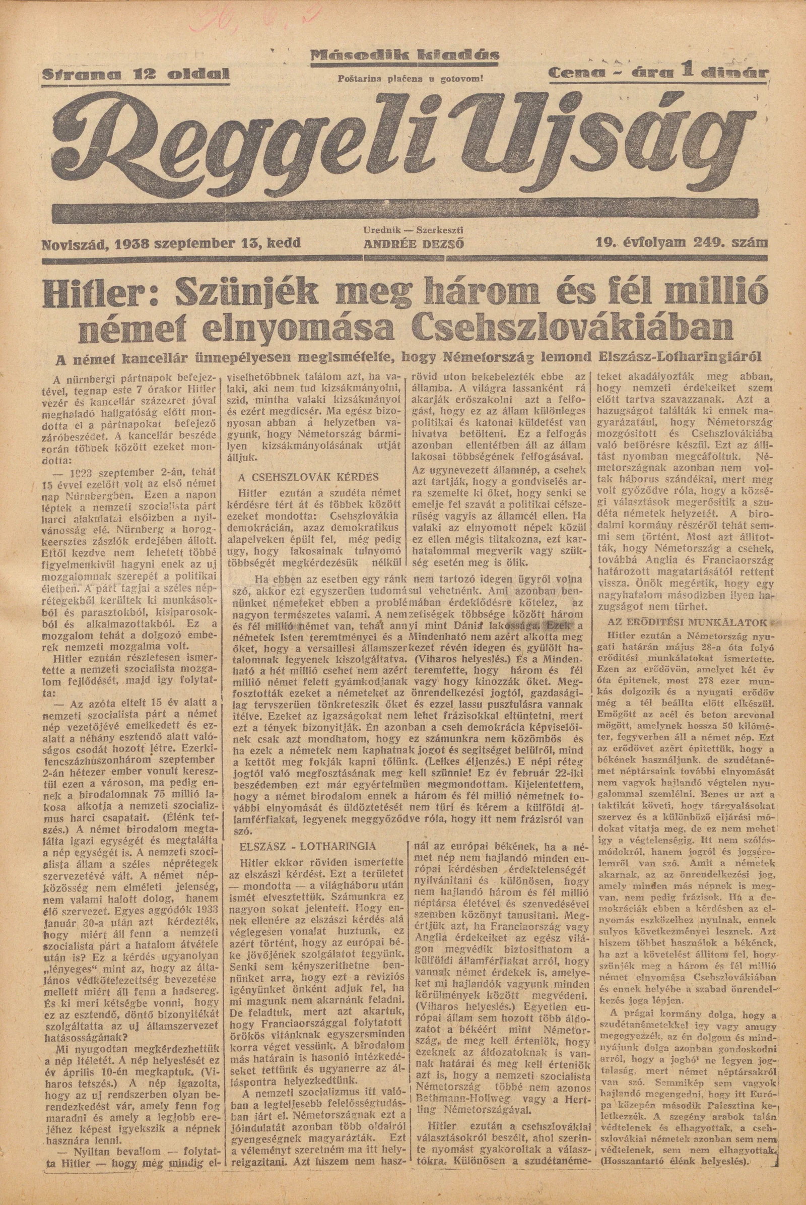 Reggeli Újság, 19. évf. 1938. augusztus 13. 249. sz.