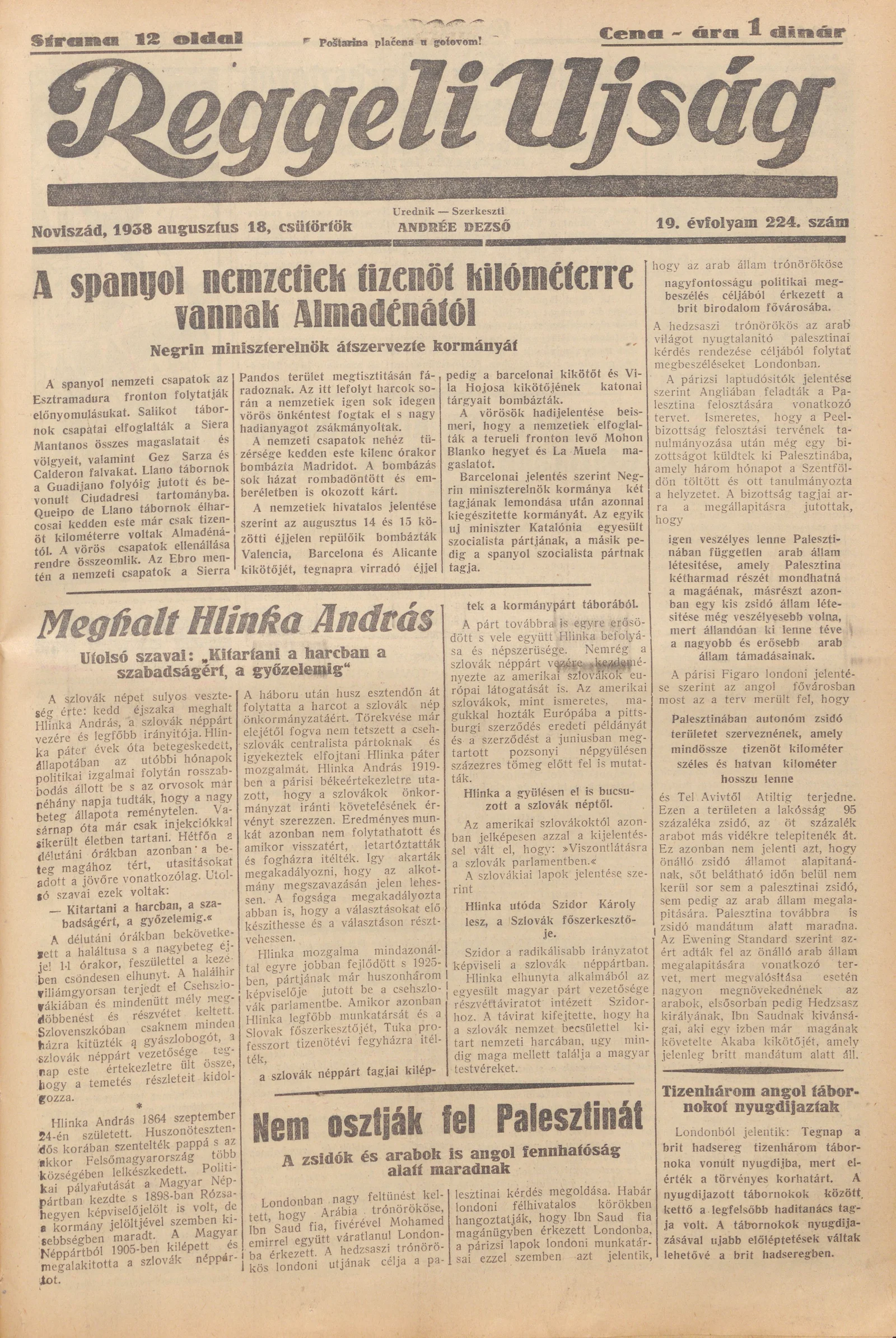 Reggeli Újság, 19. évf. 1938. augusztus 18. 224. sz.