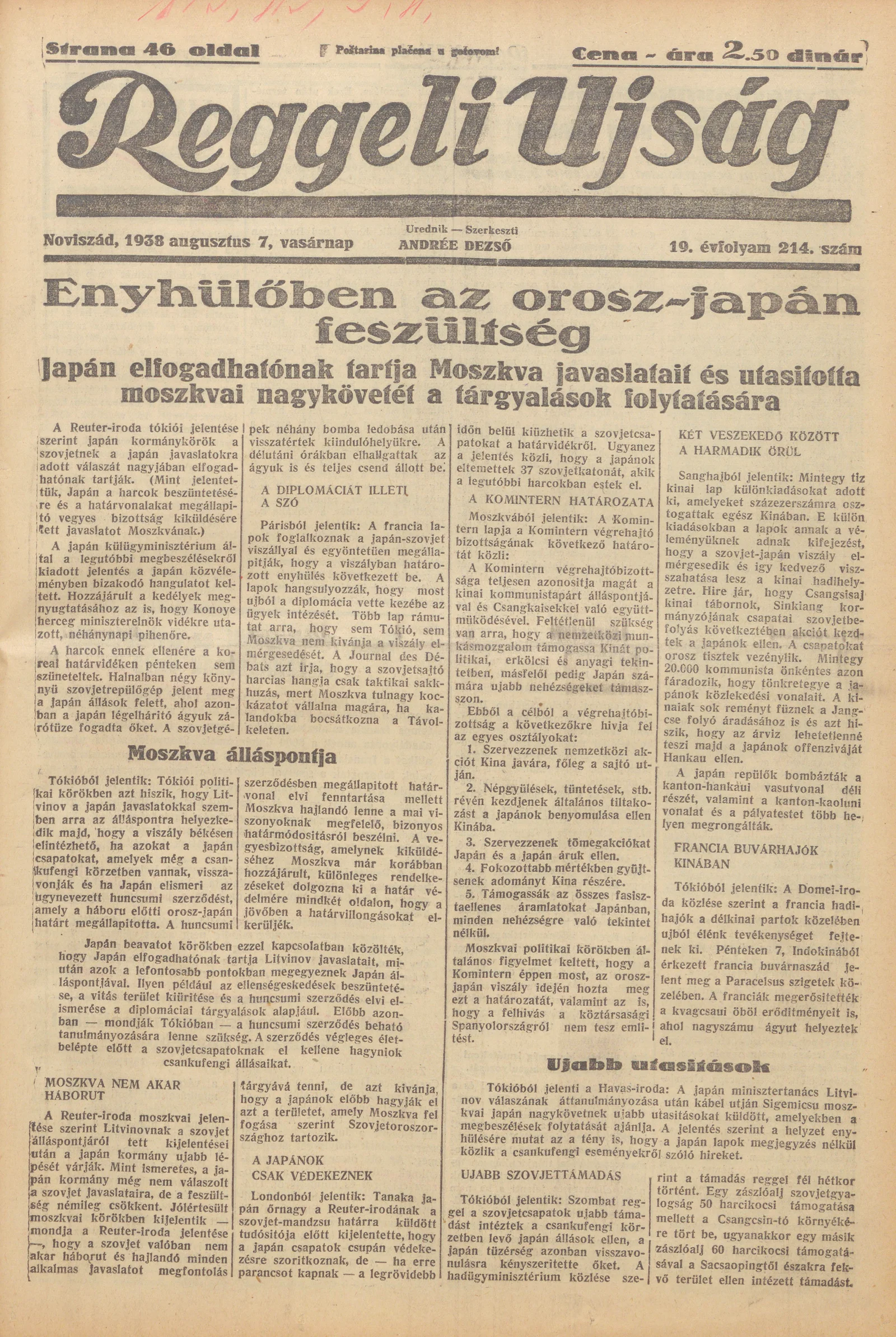 Reggeli Újság, 19. évf. 1938. augusztus 7. 214. sz.