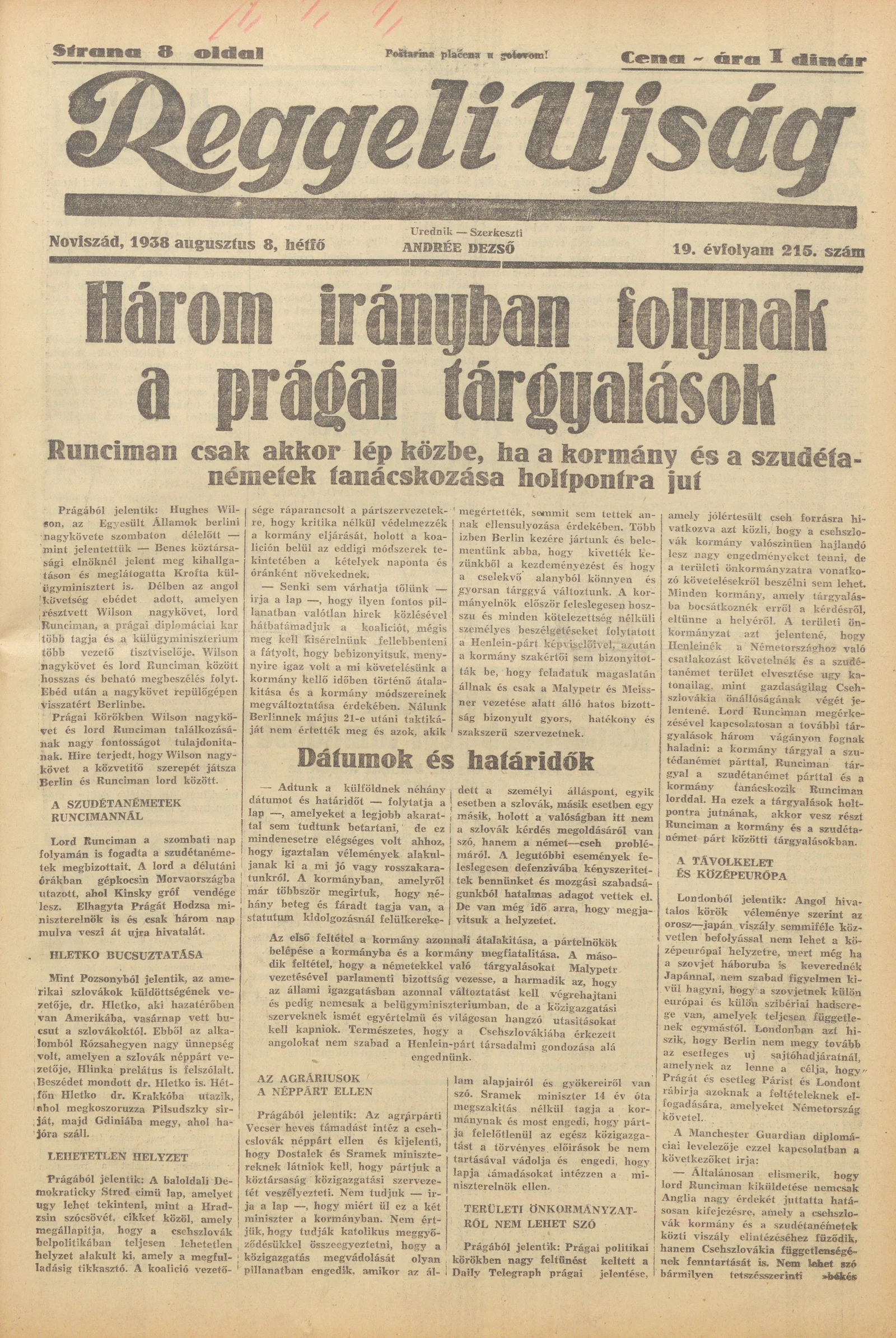 Reggeli Újság, 19. évf. 1938. augusztus 8. 215. sz.