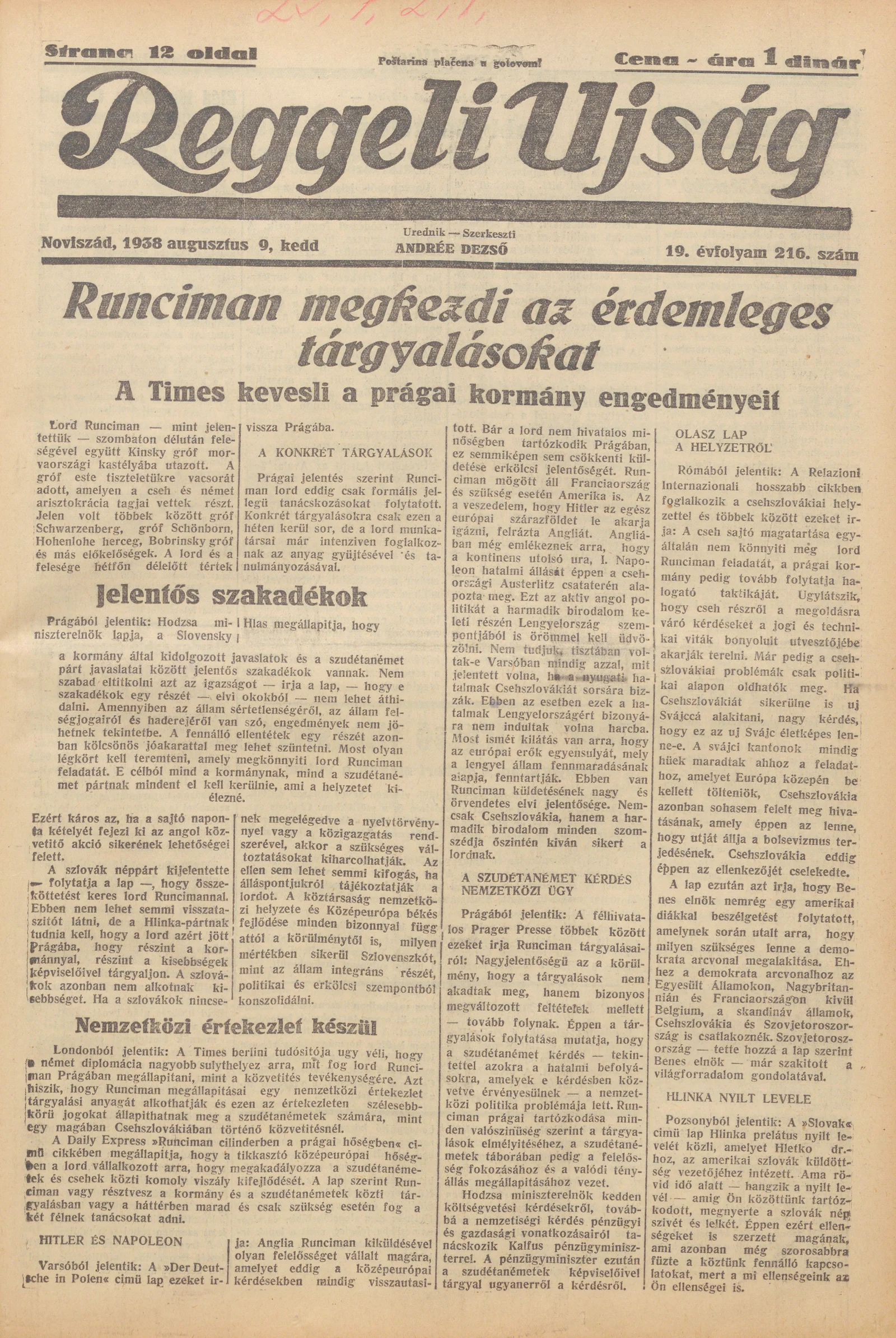 Reggeli Újság, 19. évf. 1938. augusztus 9. 216. sz.