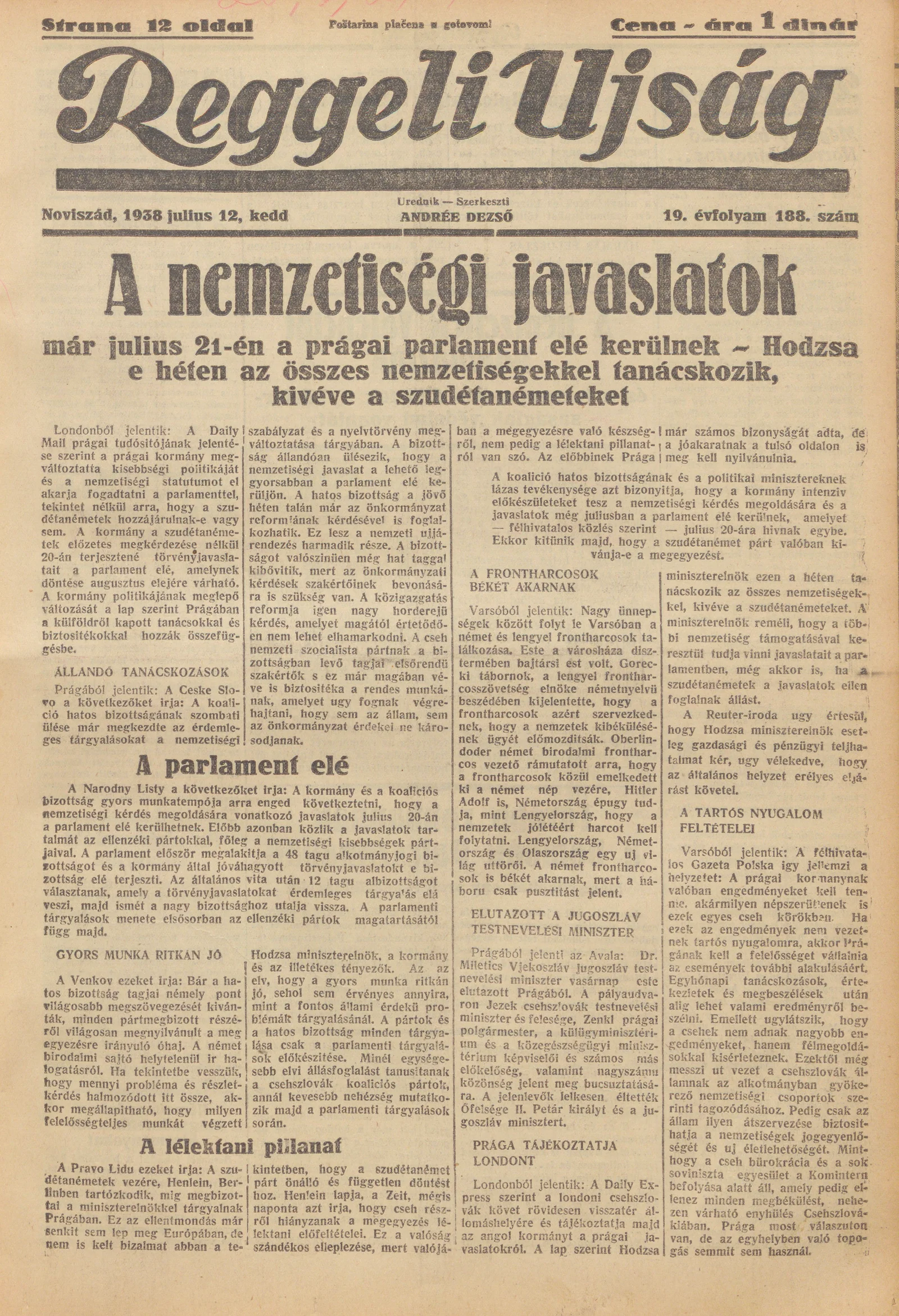 Reggeli Újság, 19. évf. 1938. július 12. 188. sz.