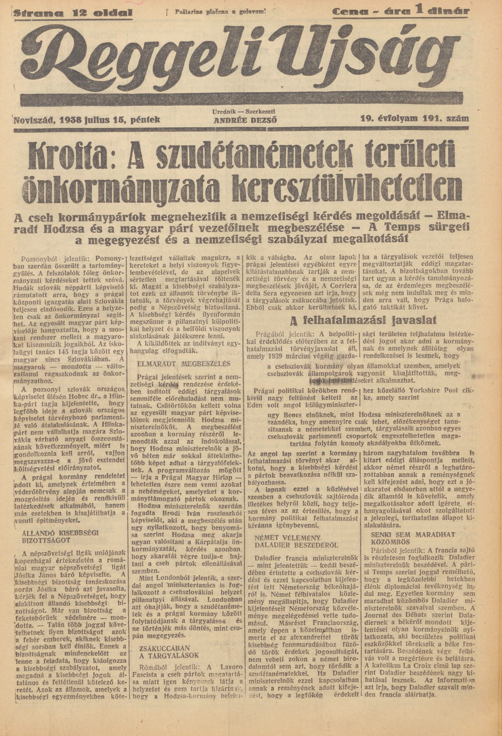 Reggeli Újság, 19. évf. 1938. július 15. 191. sz.