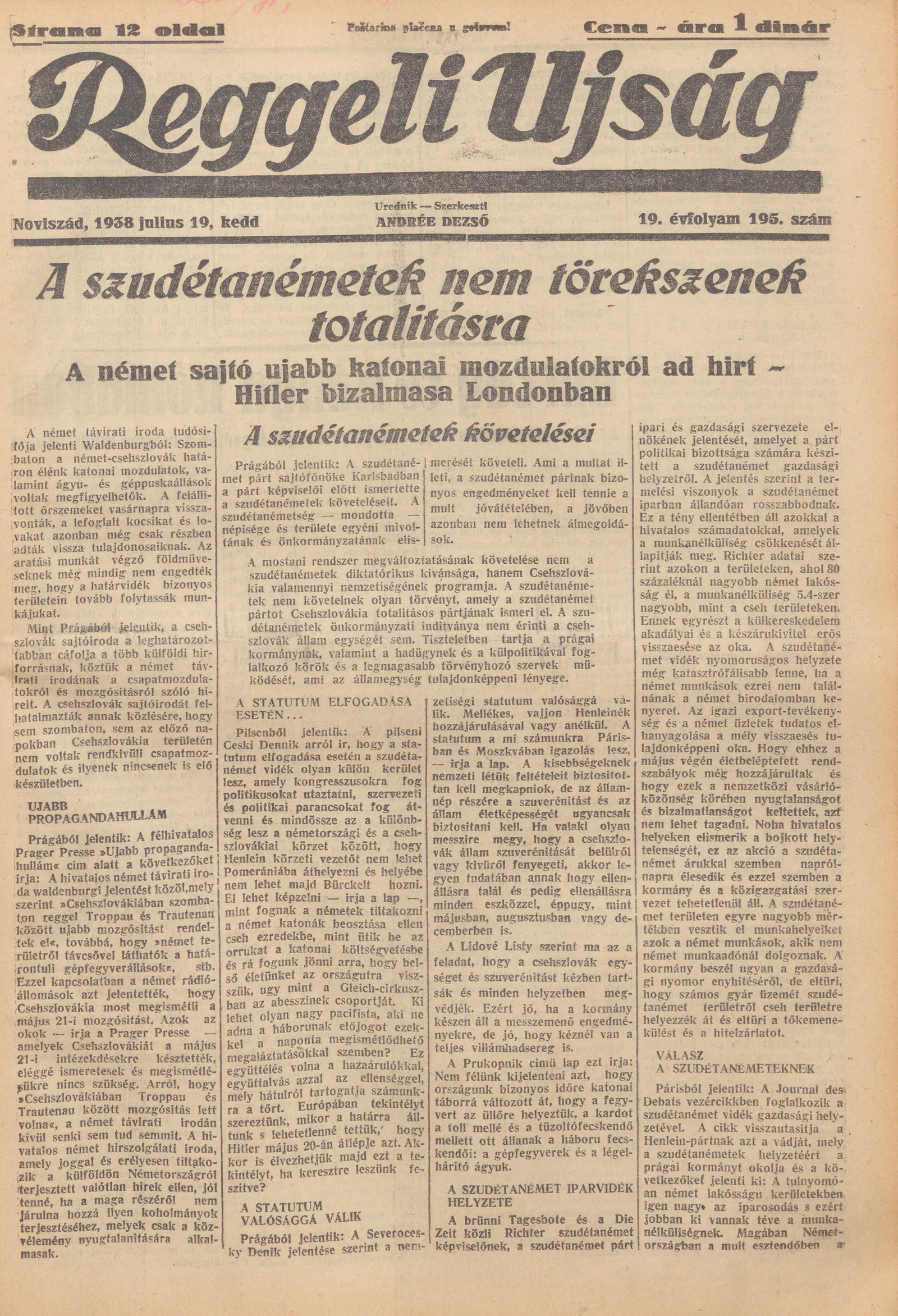 Reggeli Újság, 19. évf. 1938. július 19. 195. sz.