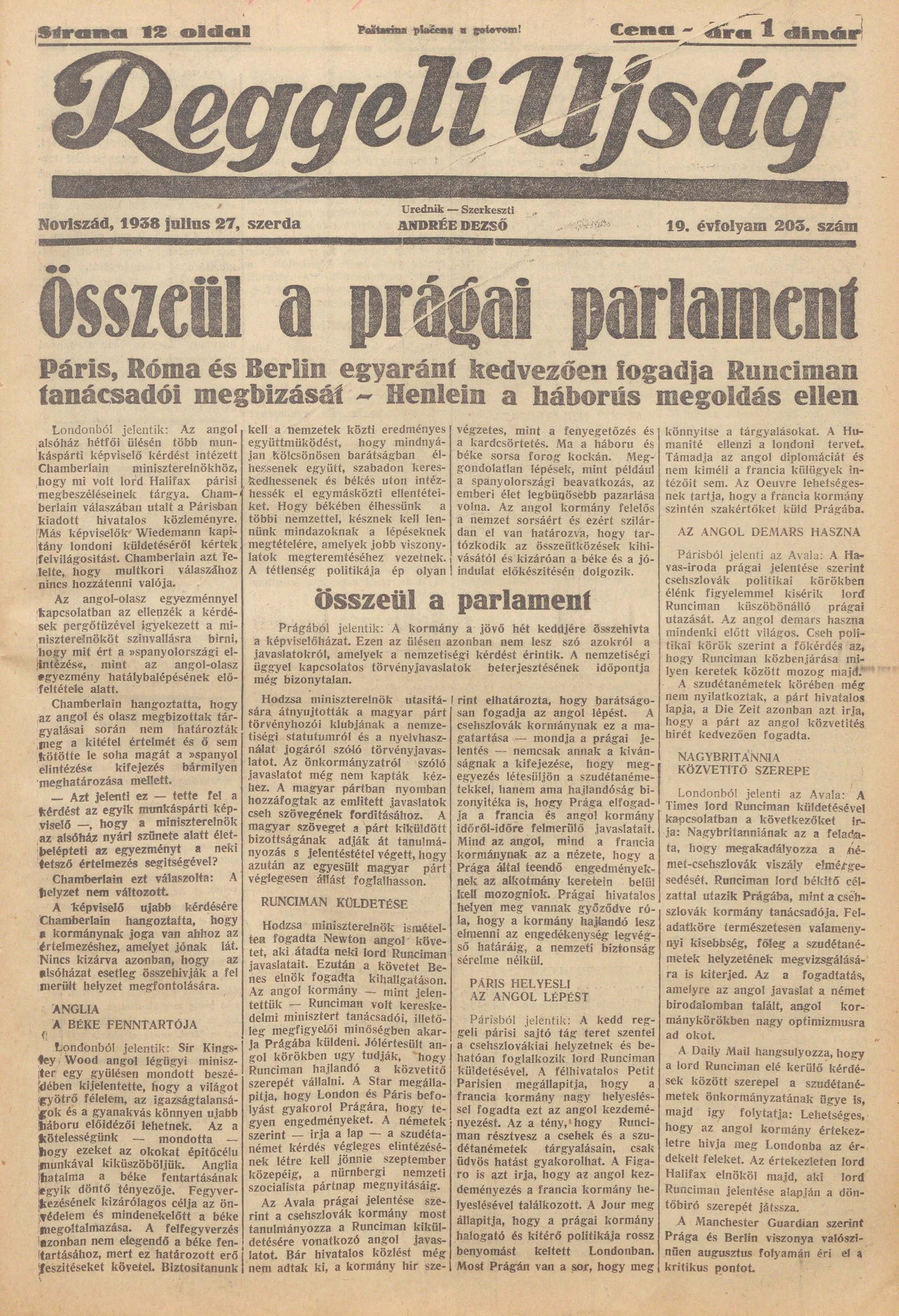 Reggeli Újság, 19. évf. 1938. július 27. 203. sz.