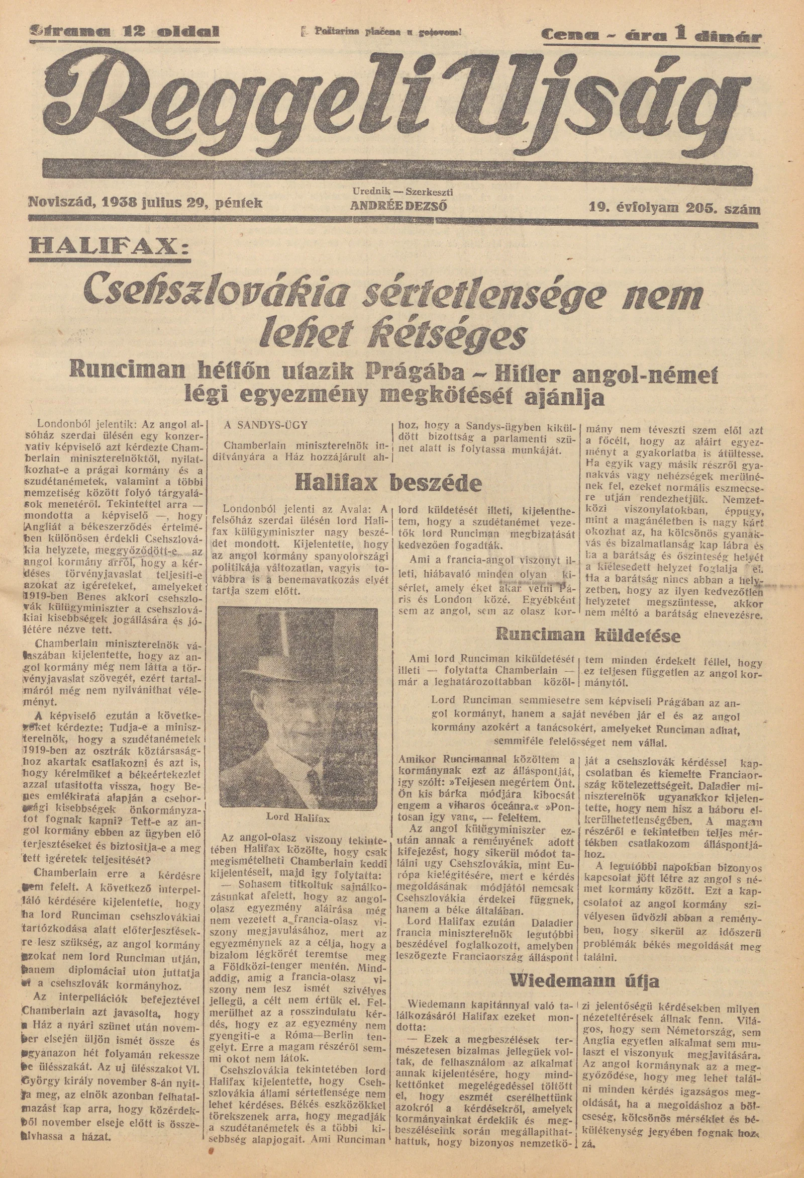 Reggeli Újság, 19. évf. 1938. július 29. 205. sz.