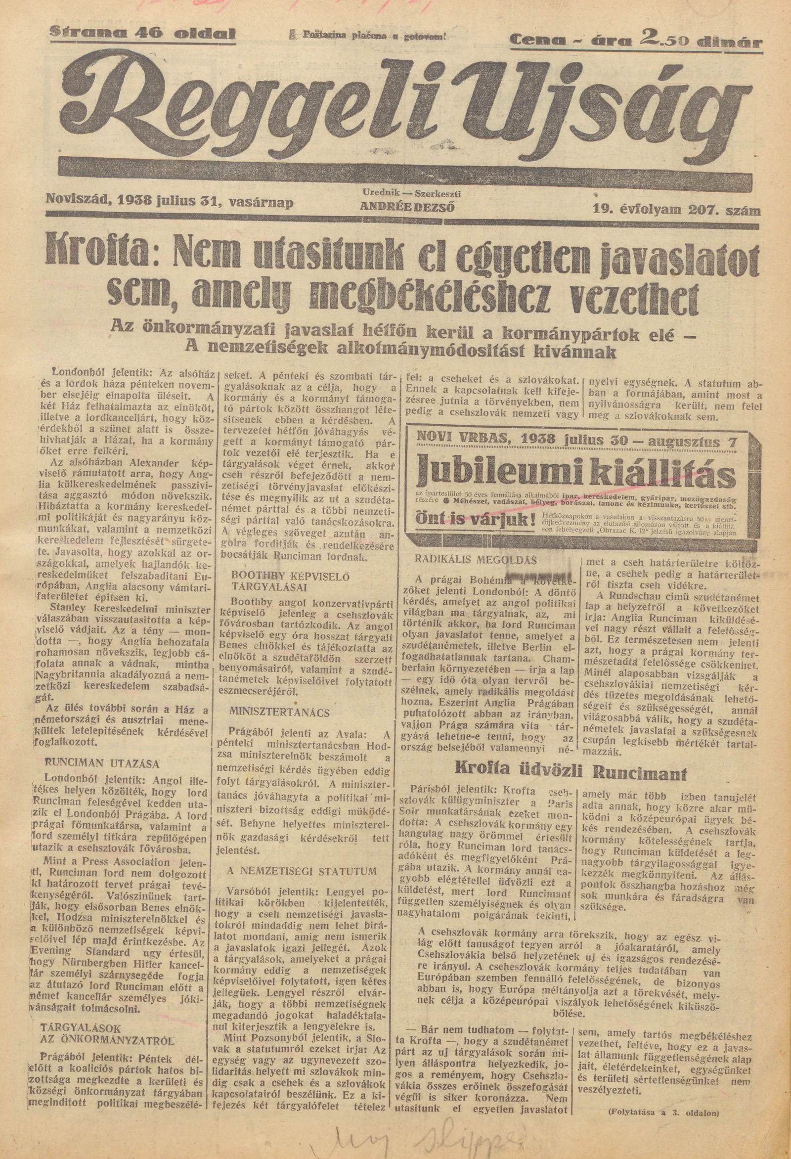 Reggeli Újság, 19. évf. 1938. július 31. 207. sz.