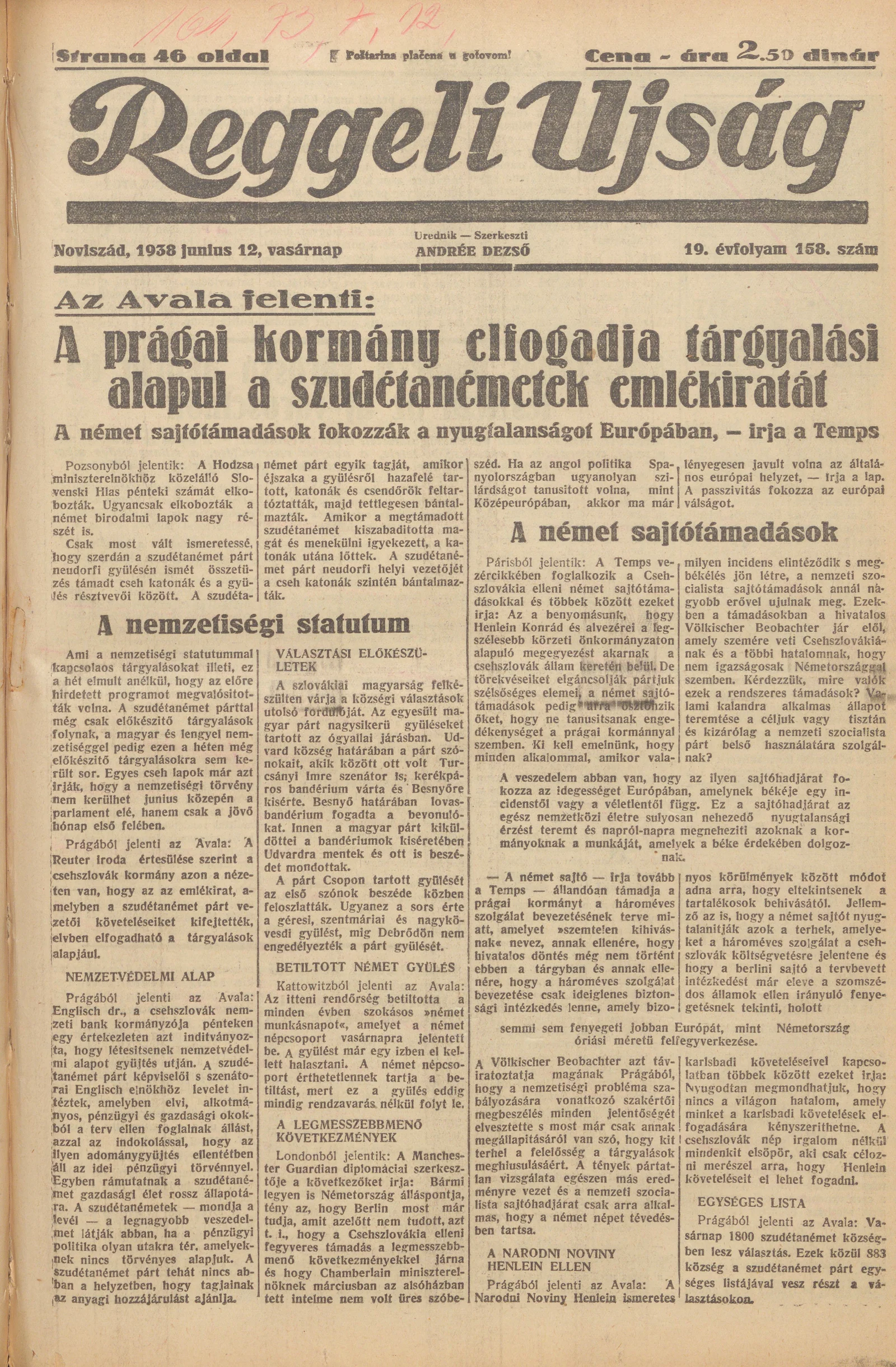 Reggeli Újság, 19. évf. 1938. június 12. 158. sz.