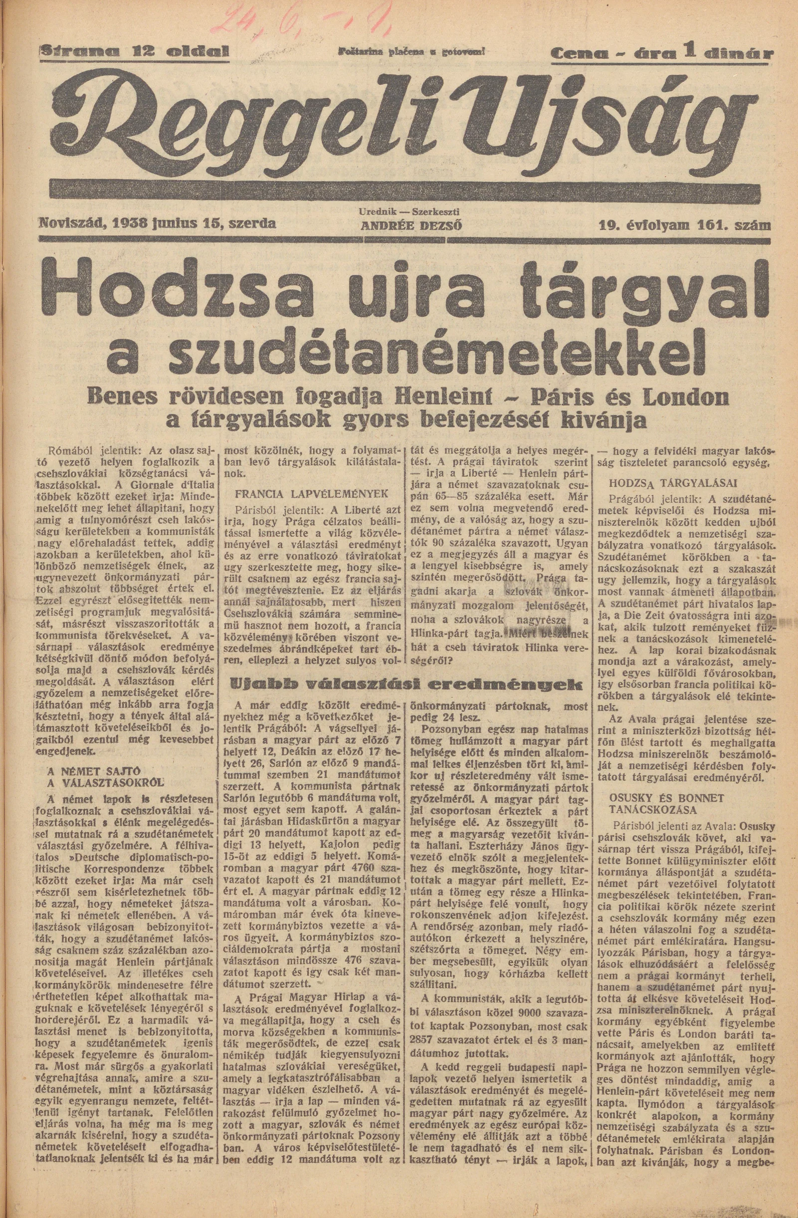 Reggeli Újság, 19. évf. 1938. június 15. 161. sz.