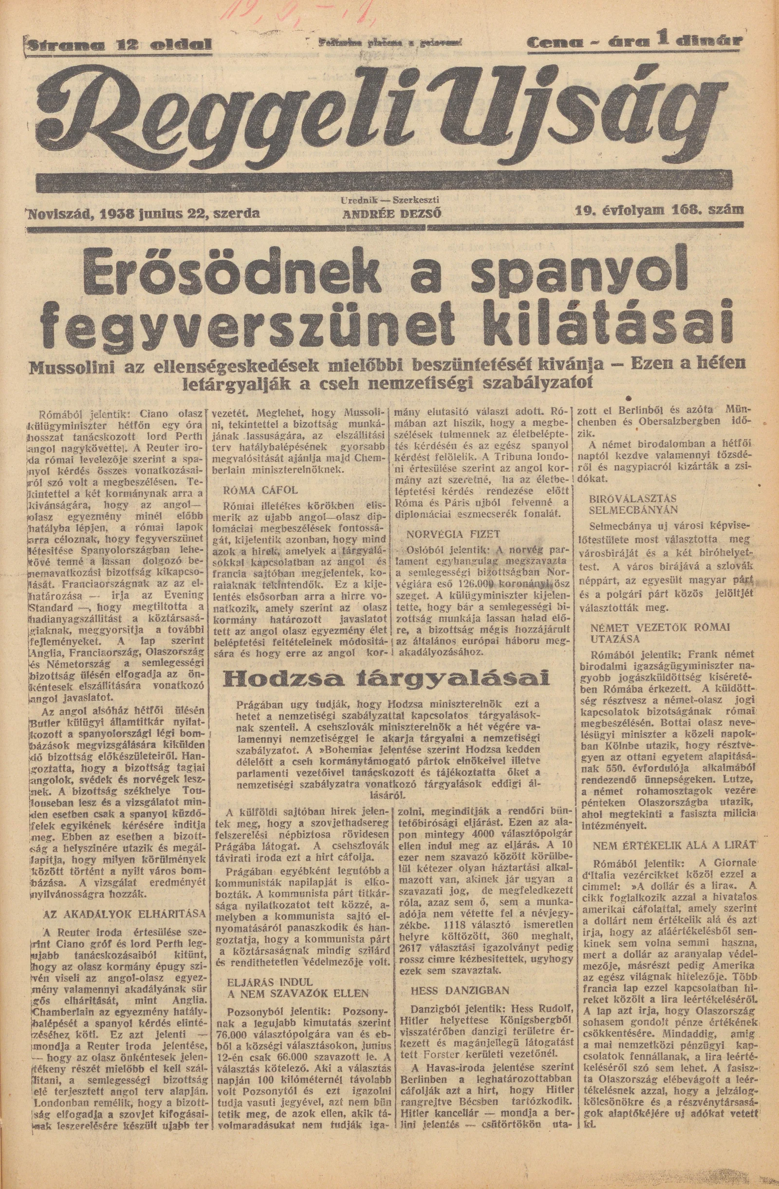 Reggeli Újság, 19. évf. 1938. június 22. 168. sz.