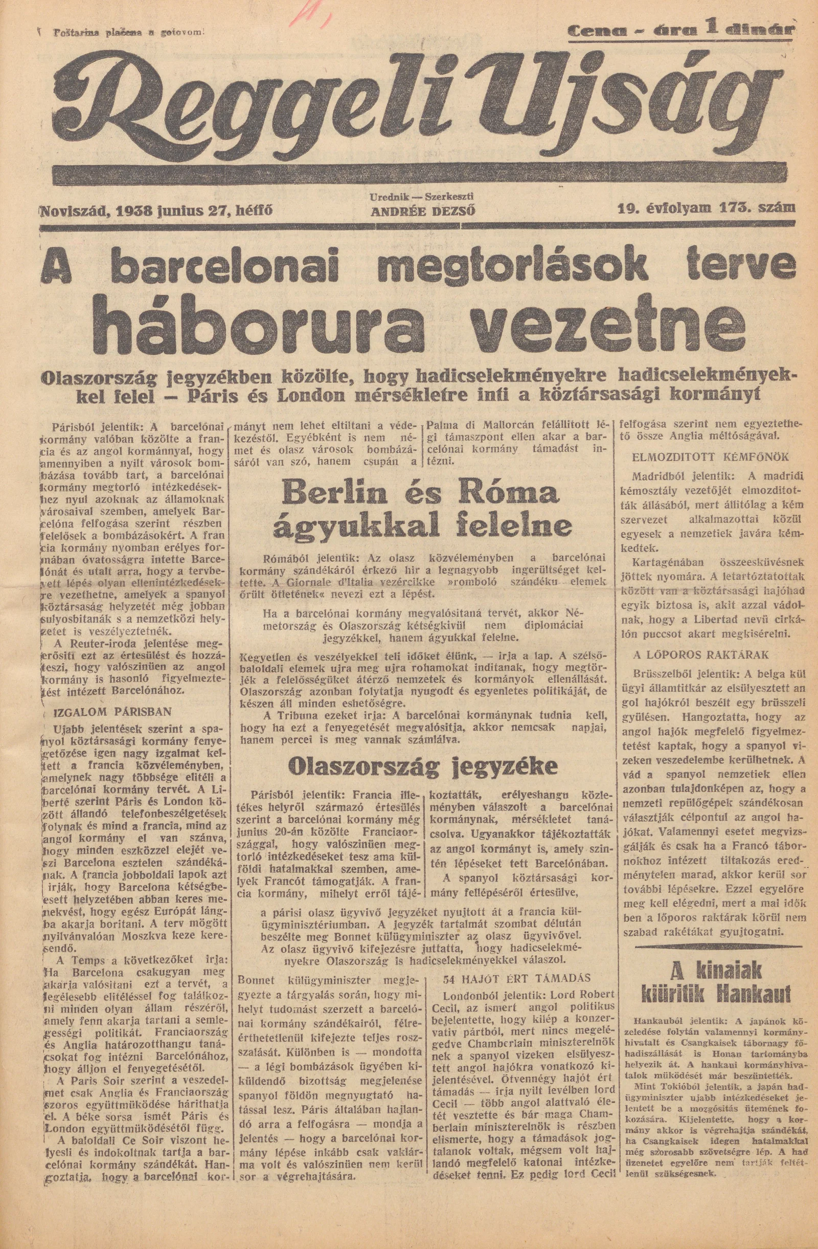 Reggeli Újság, 19. évf. 1938. június 27. 173. sz.
