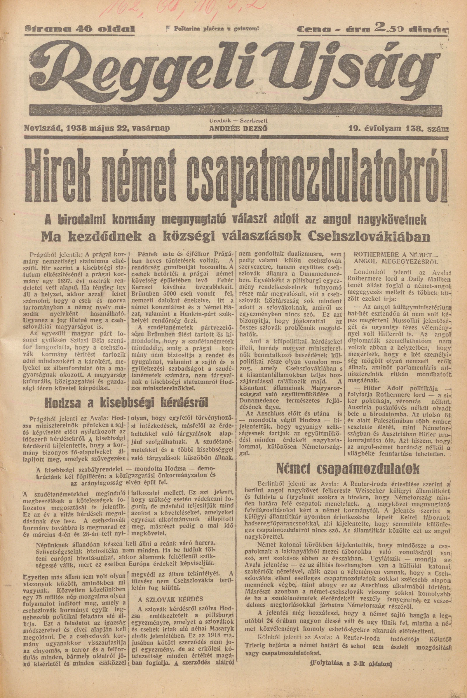 Reggeli Újság, 19. évf. 1938. május 22. 138. sz.