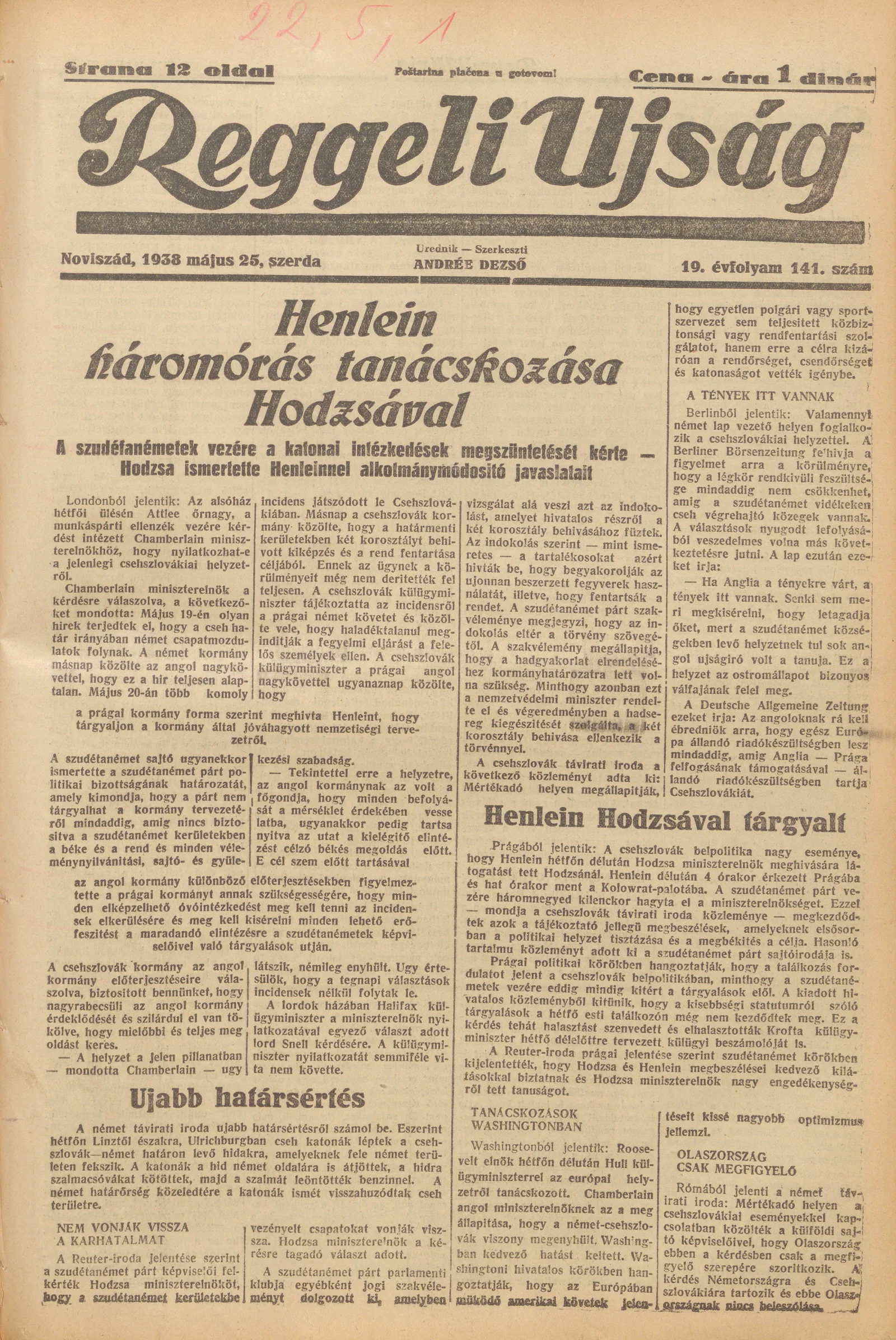 Reggeli Újság, 19. évf. 1938. május 25. 141. sz.