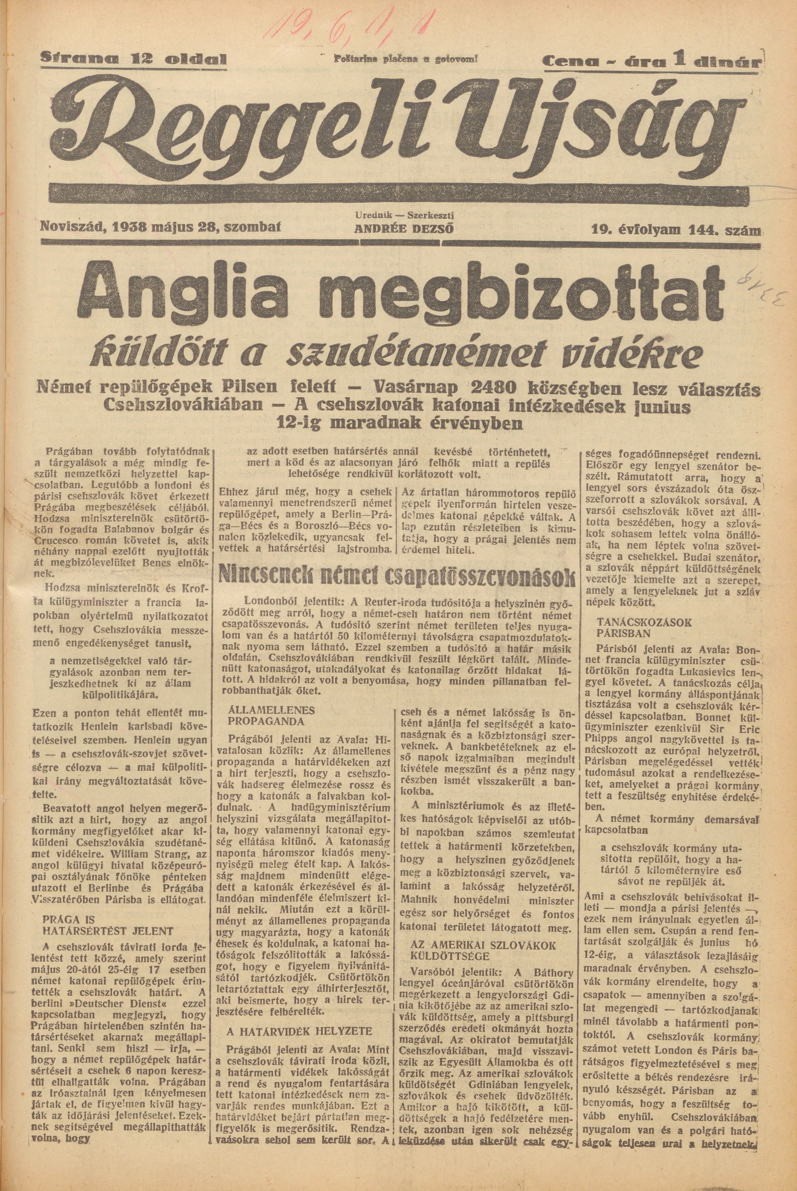 Reggeli Újság, 19. évf. 1938. május 28. 144. sz.