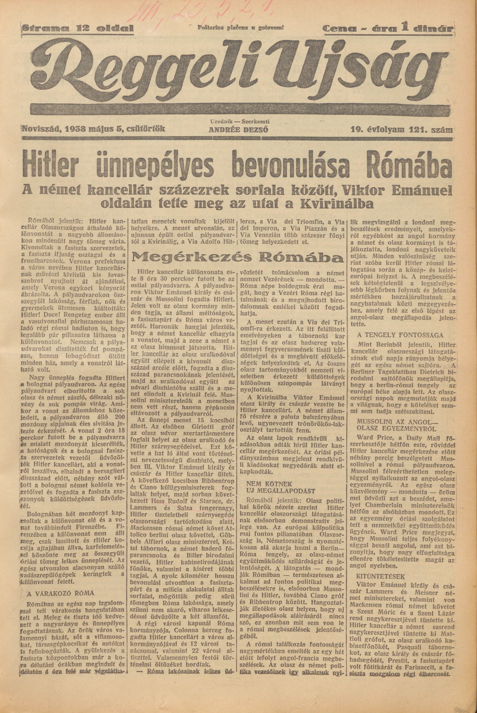 Reggeli Újság, 19. évf. 1938. május 5. 121. sz.