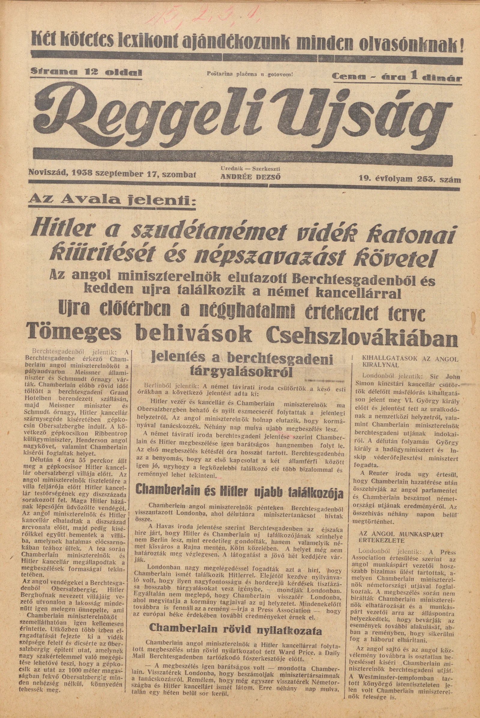 Reggeli Újság, 19. évf. 1938. szeptember 17. 253. sz.