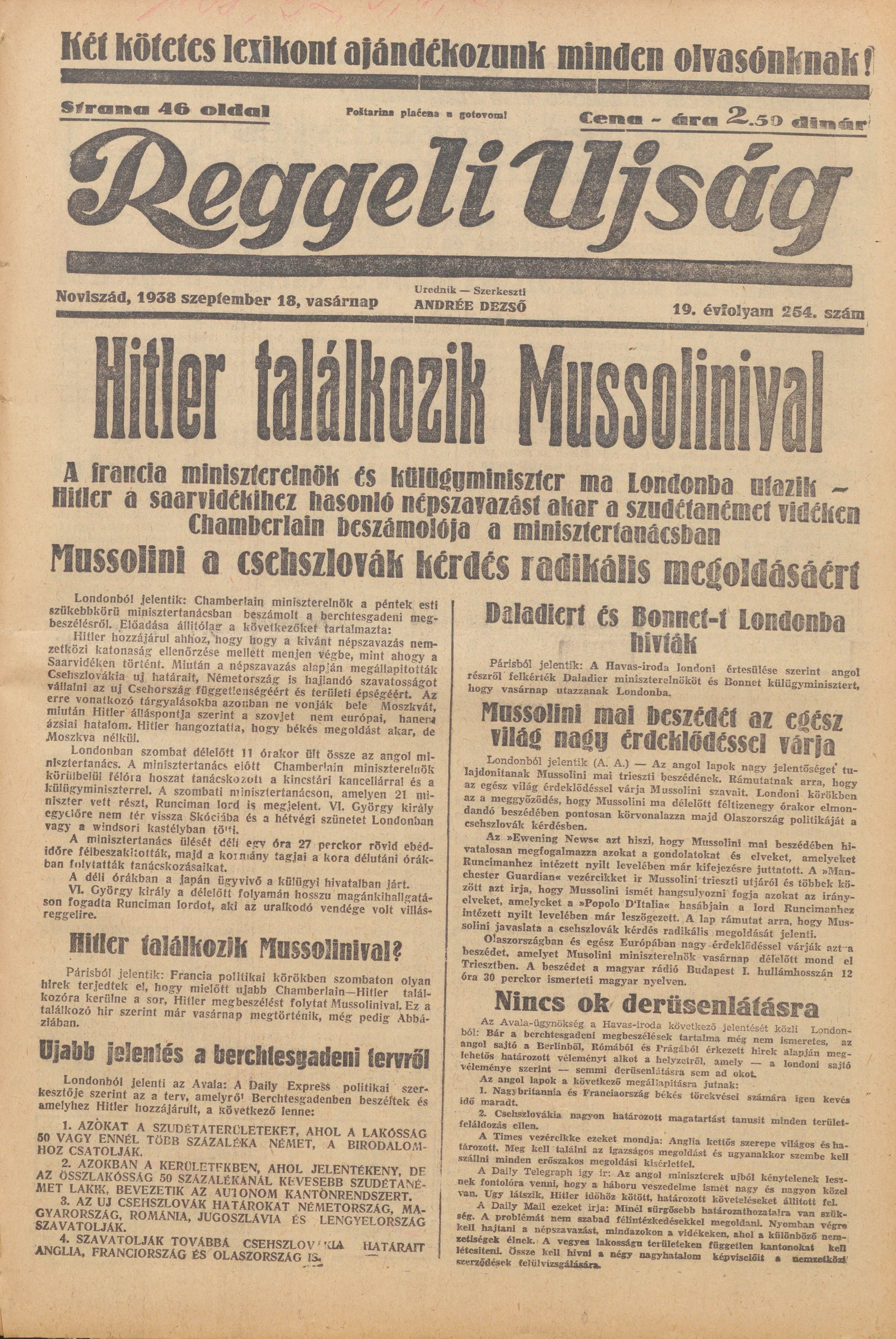 Reggeli Újság, 19. évf. 1938. szeptember 18. 254. sz.