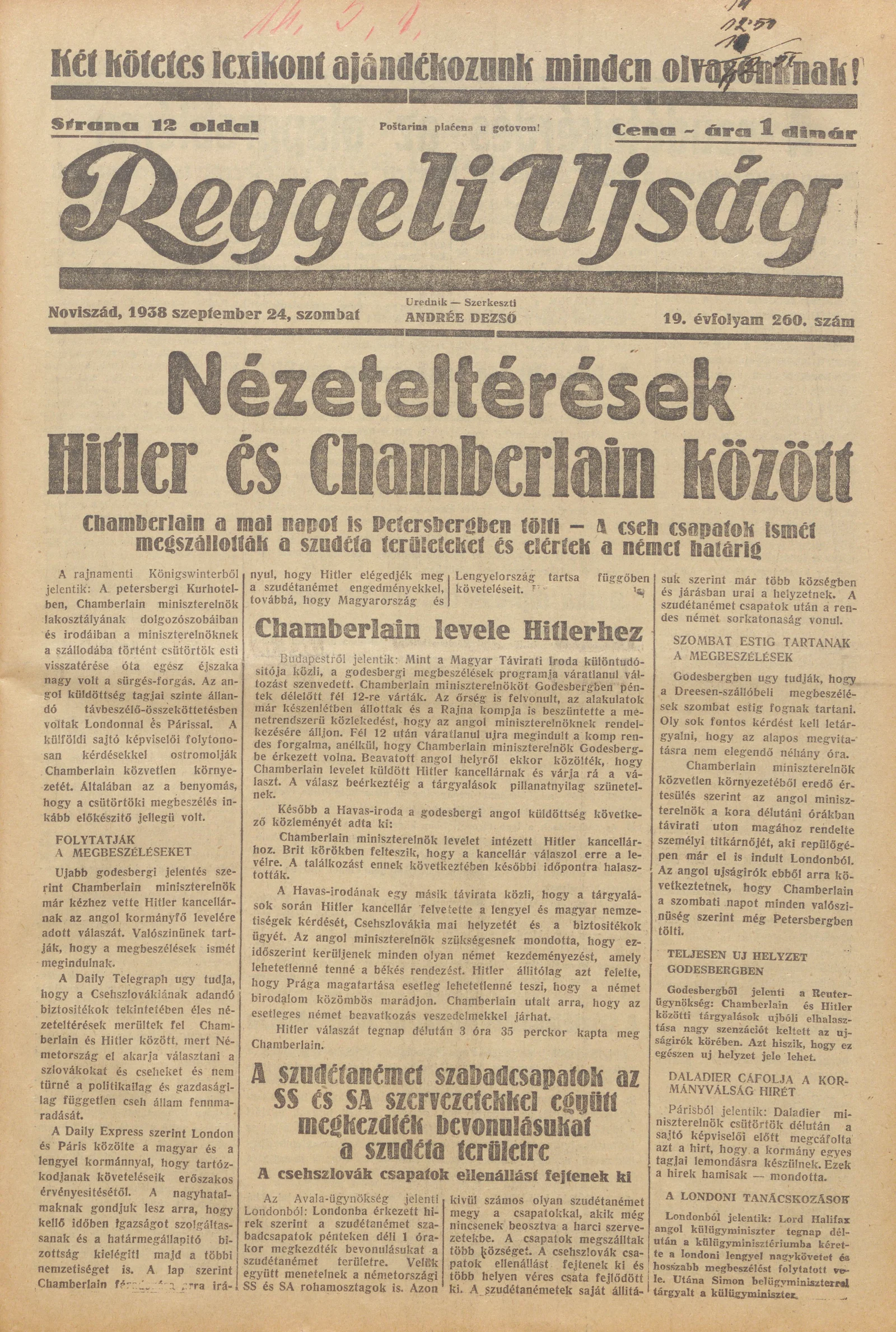 Reggeli Újság, 19. évf. 1938. szeptember 24. 260. sz.