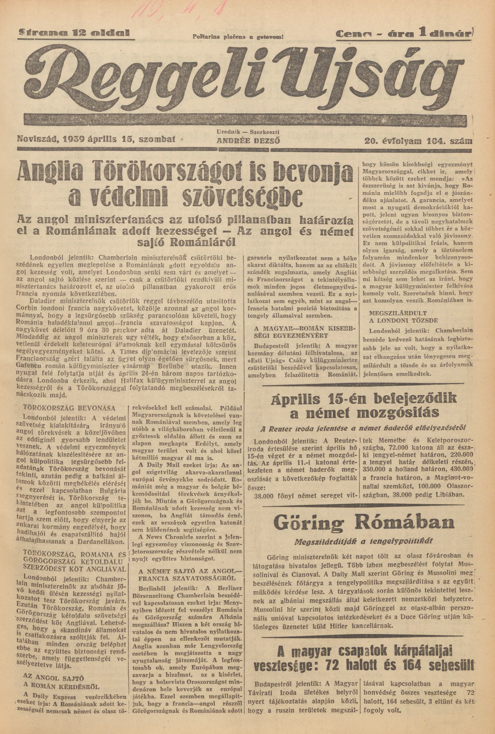 Reggeli Újság, 20. évf. 1939. április 15. 104. sz.