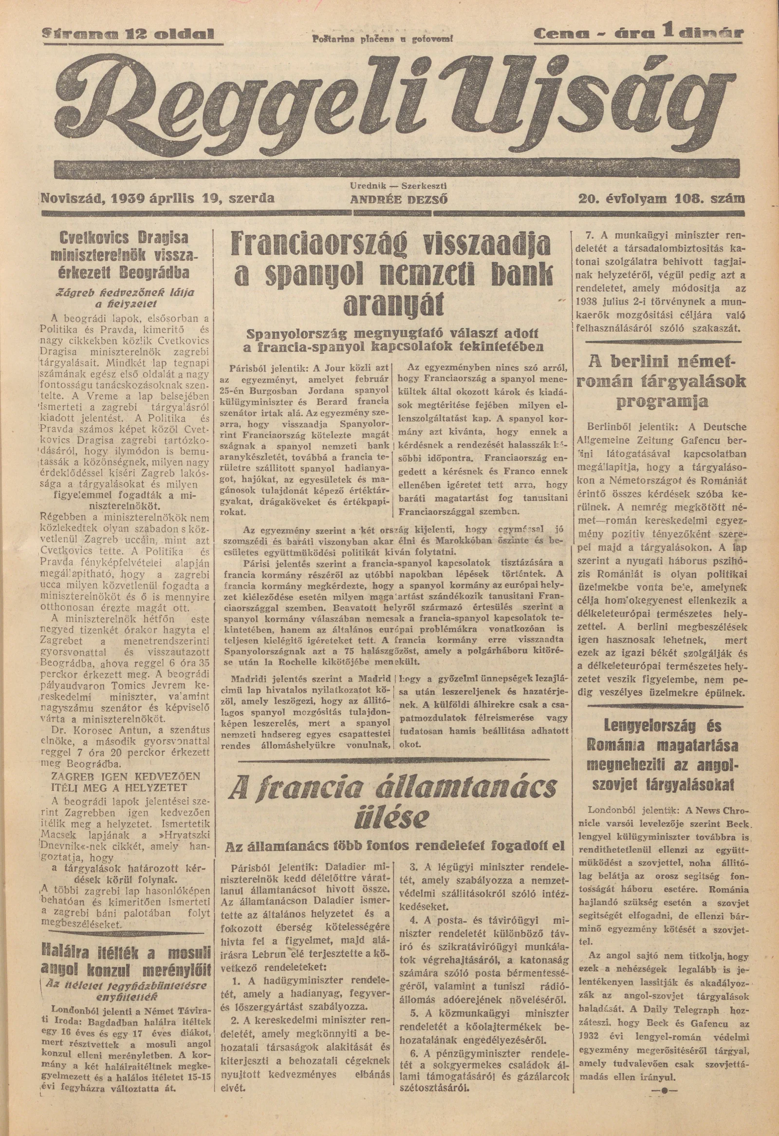 Reggeli Újság, 20. évf. 1939. április 19. 108. sz.