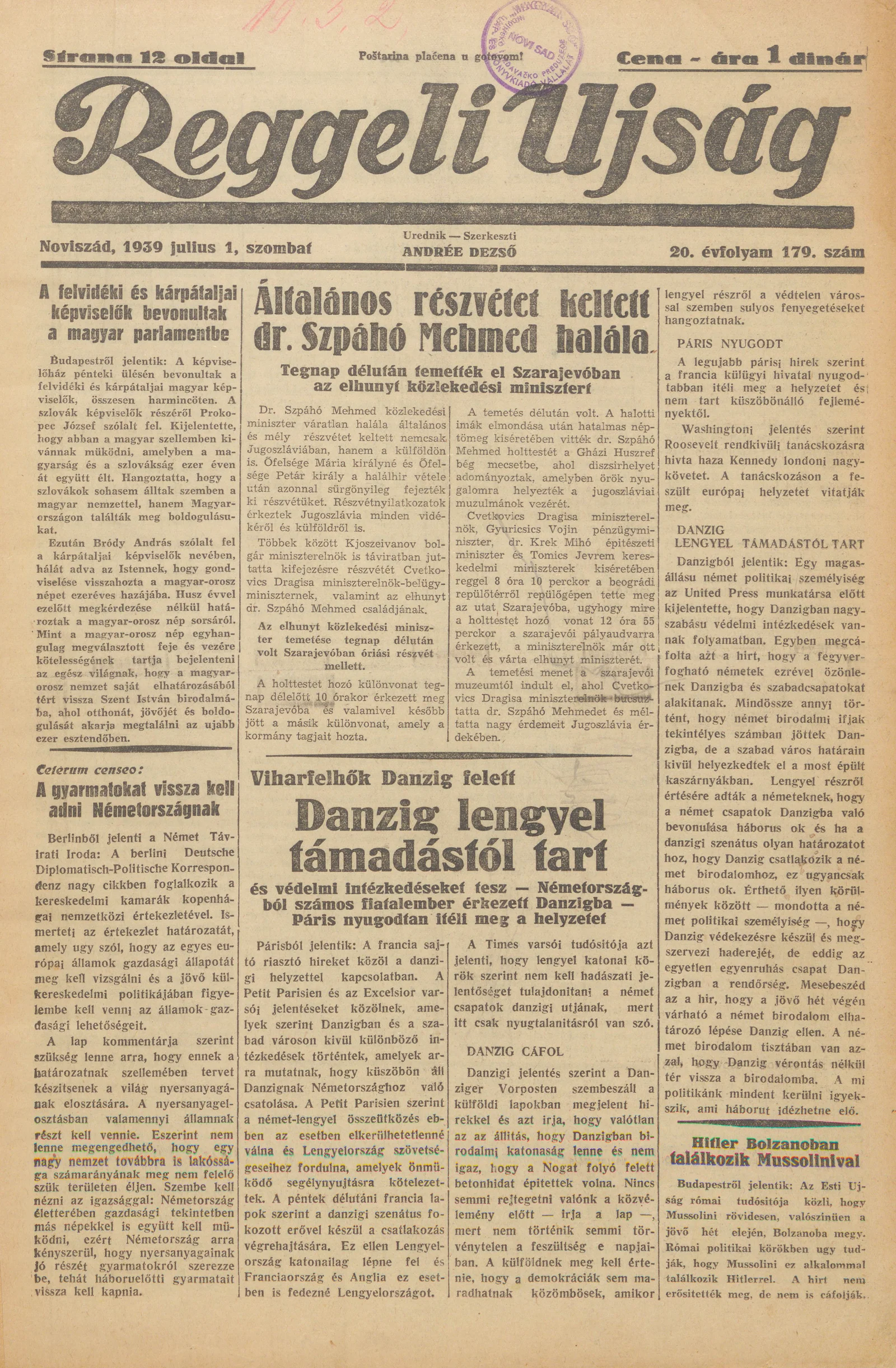 Reggeli Újság, 20. évf. 1939. július 1. 179. sz.