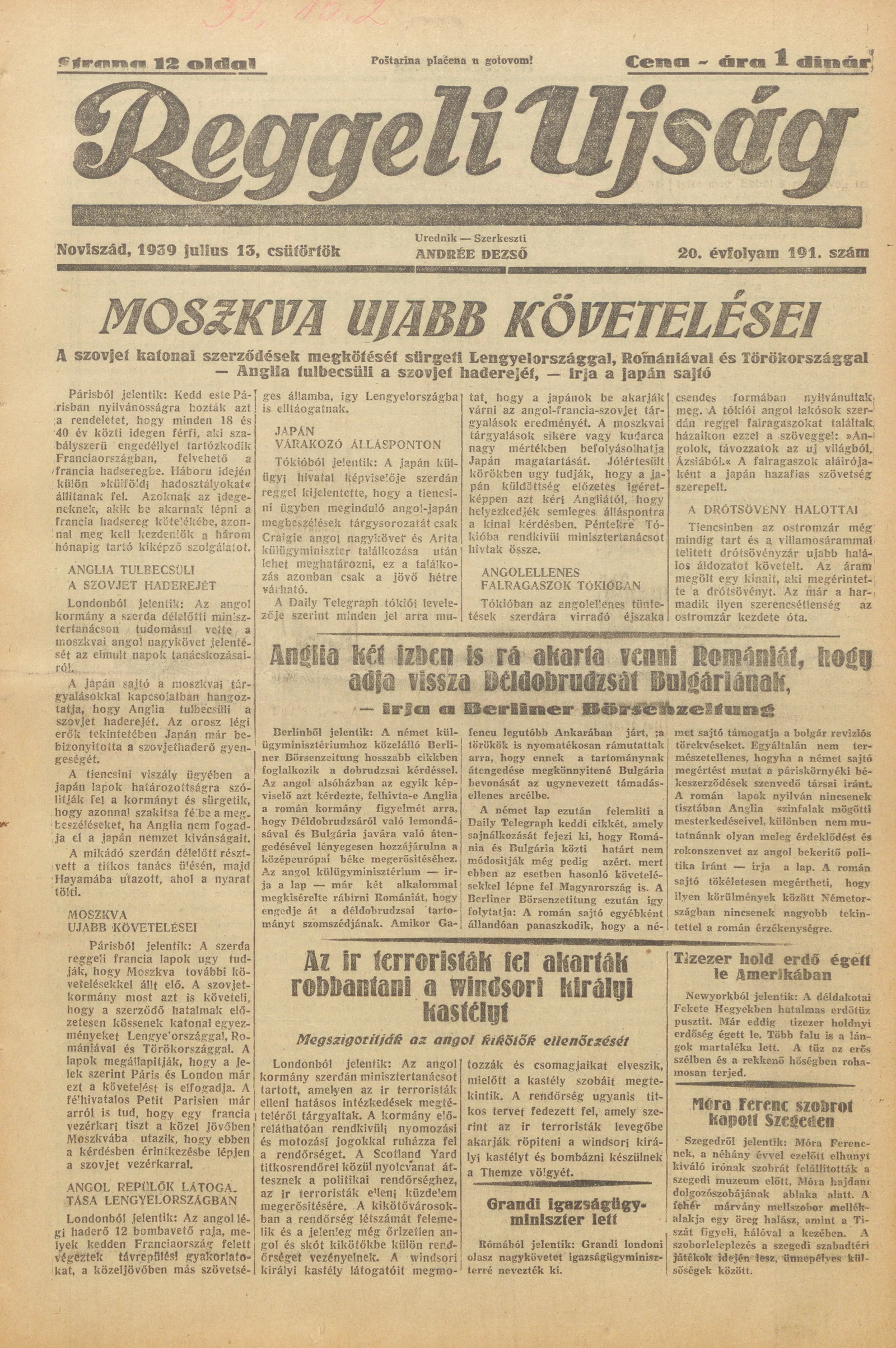 Reggeli Újság, 20. évf. 1939. július 13. 191. sz.