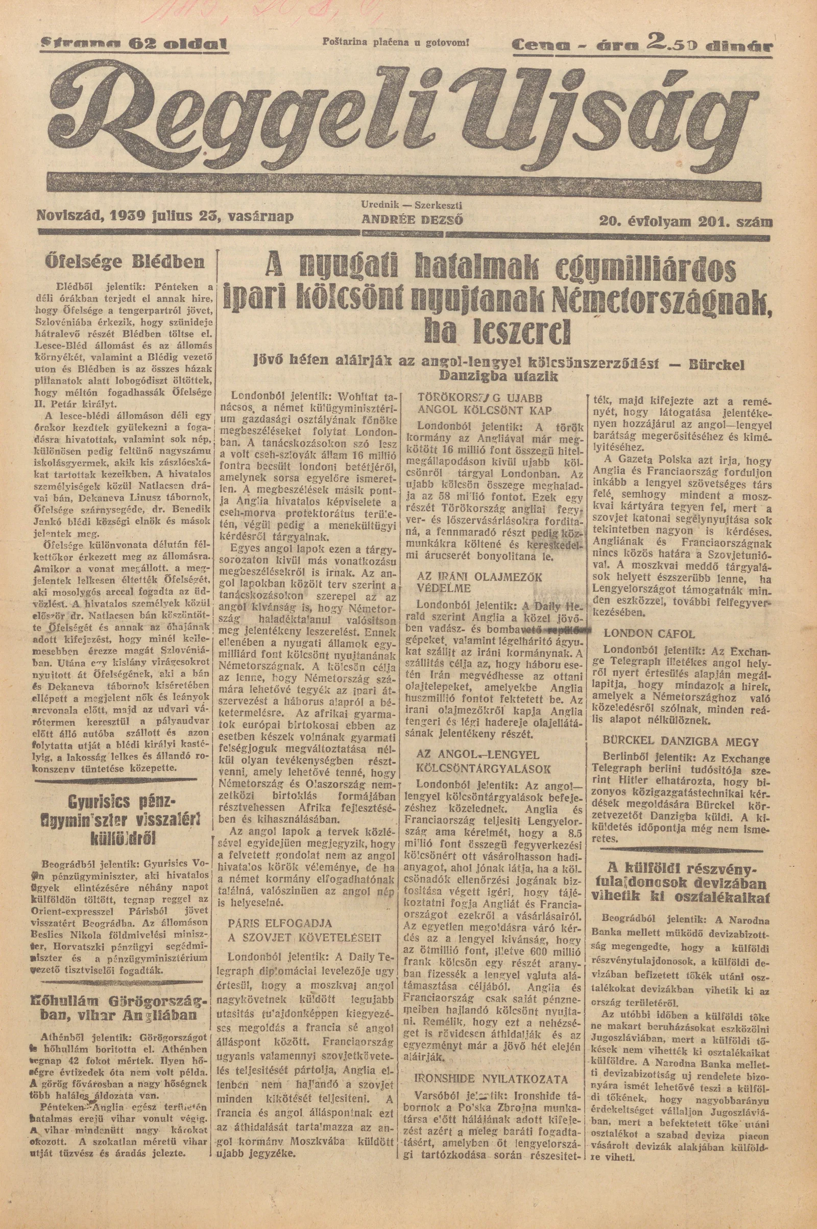 Reggeli Újság, 20. évf. 1939. július 23. 201. sz.