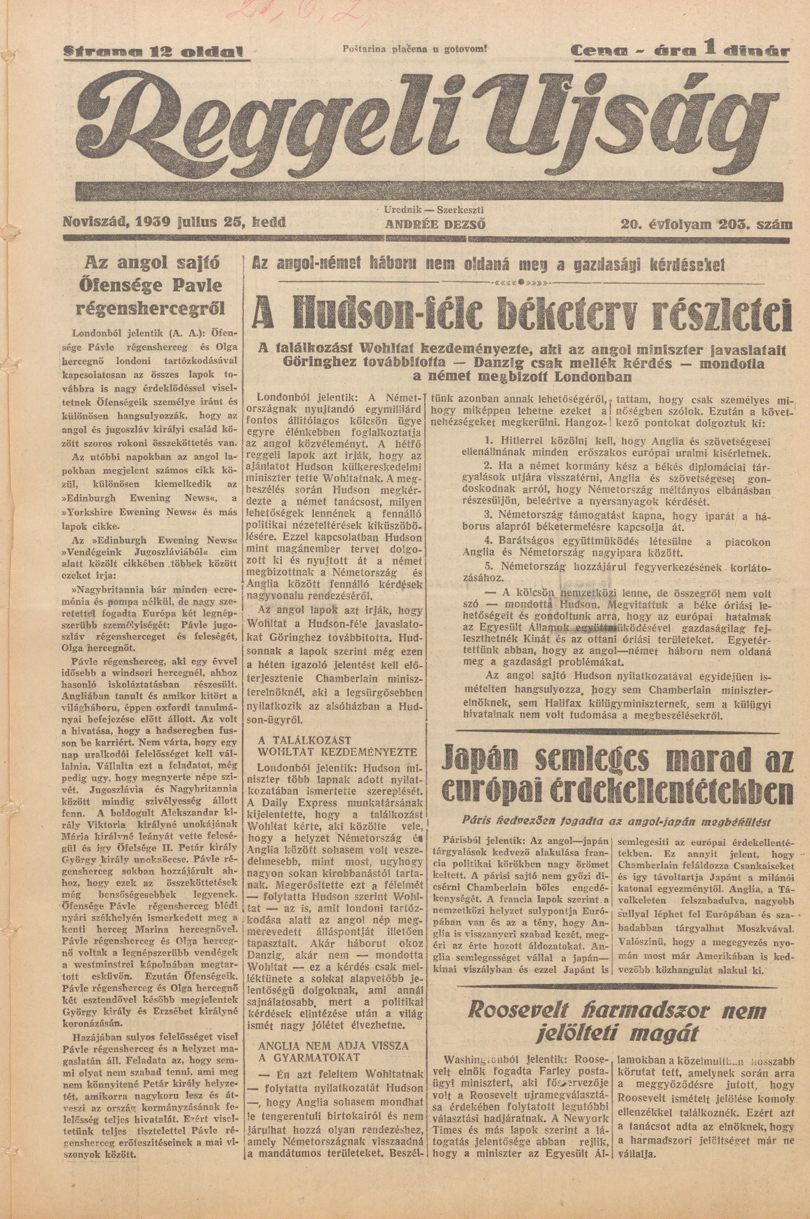 Reggeli Újság, 20. évf. 1939. július 25. 203. sz.