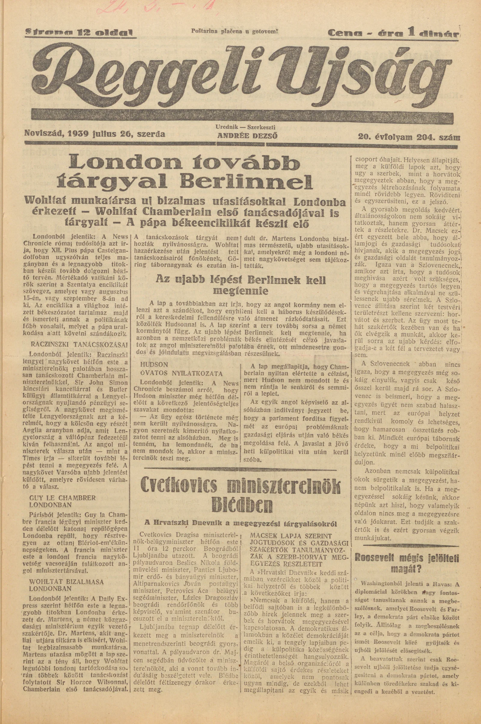 Reggeli Újság, 20. évf. 1939. július 26. 204. sz.