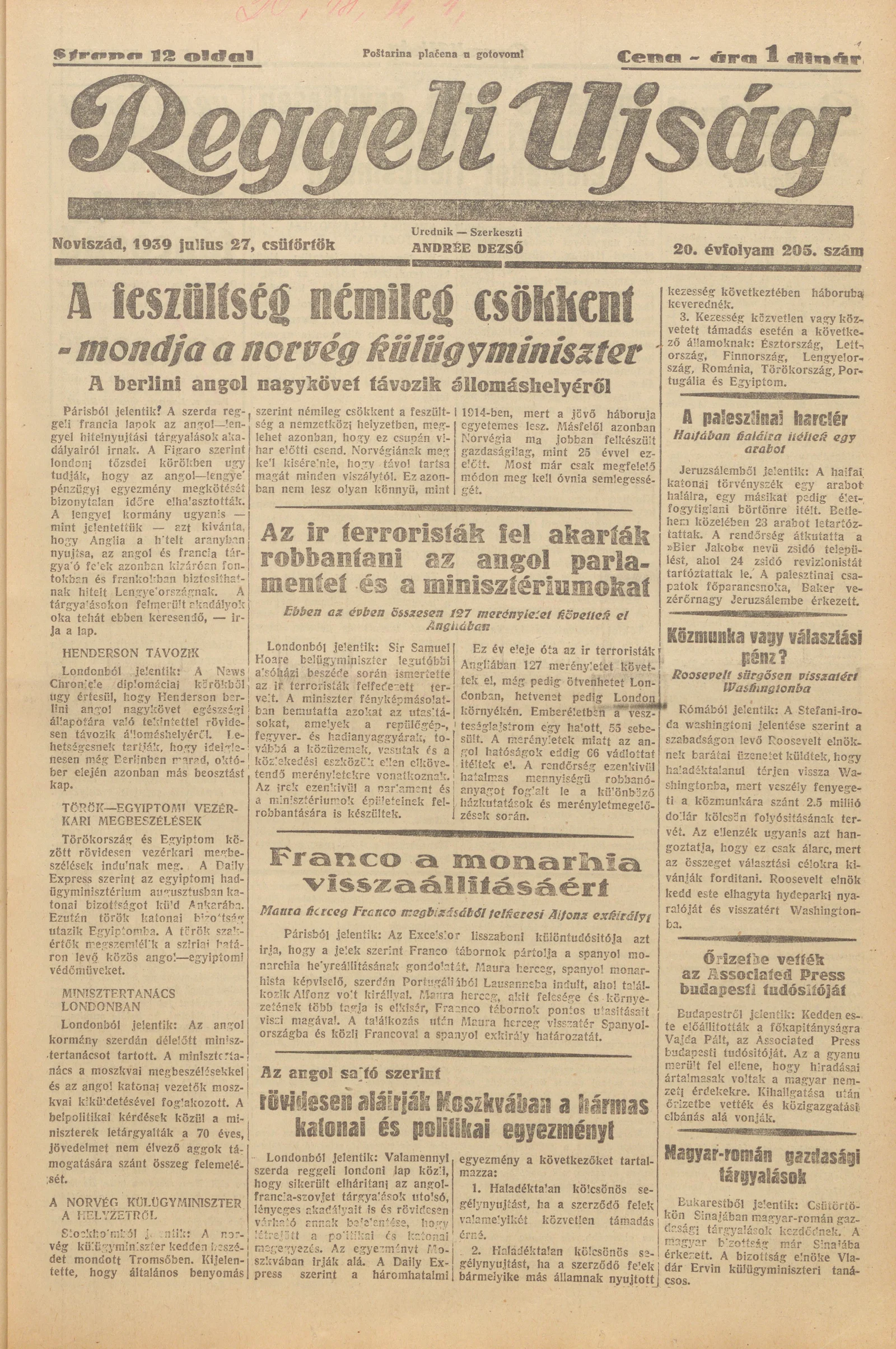 Reggeli Újság, 20. évf. 1939. július 27. 205. sz.