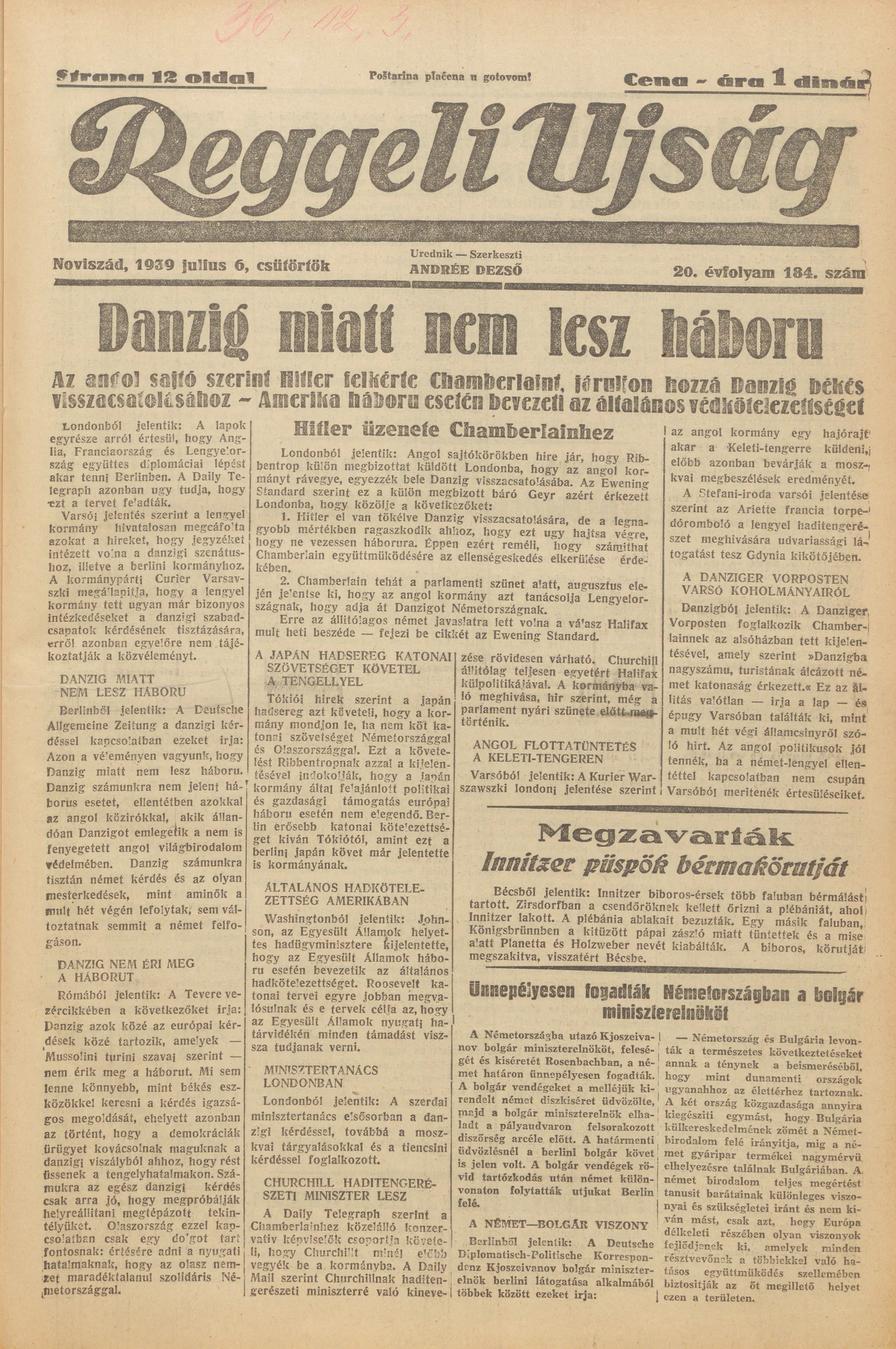 Reggeli Újság, 20. évf. 1939. július 6. 184. sz.
