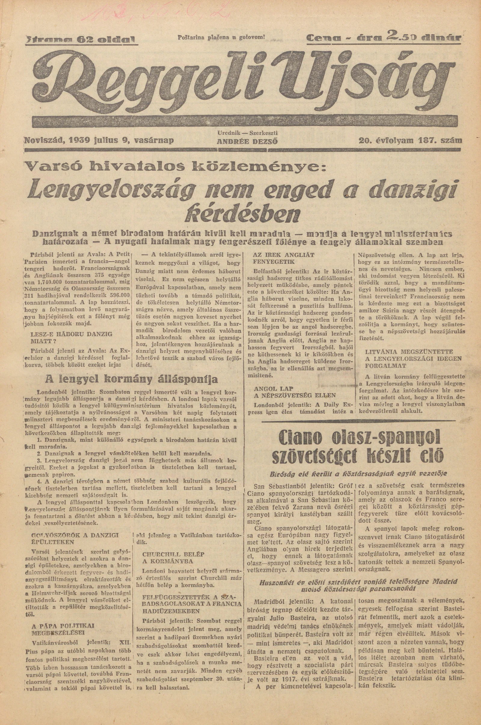 Reggeli Újság, 20. évf. 1939. július 9. 187. sz.