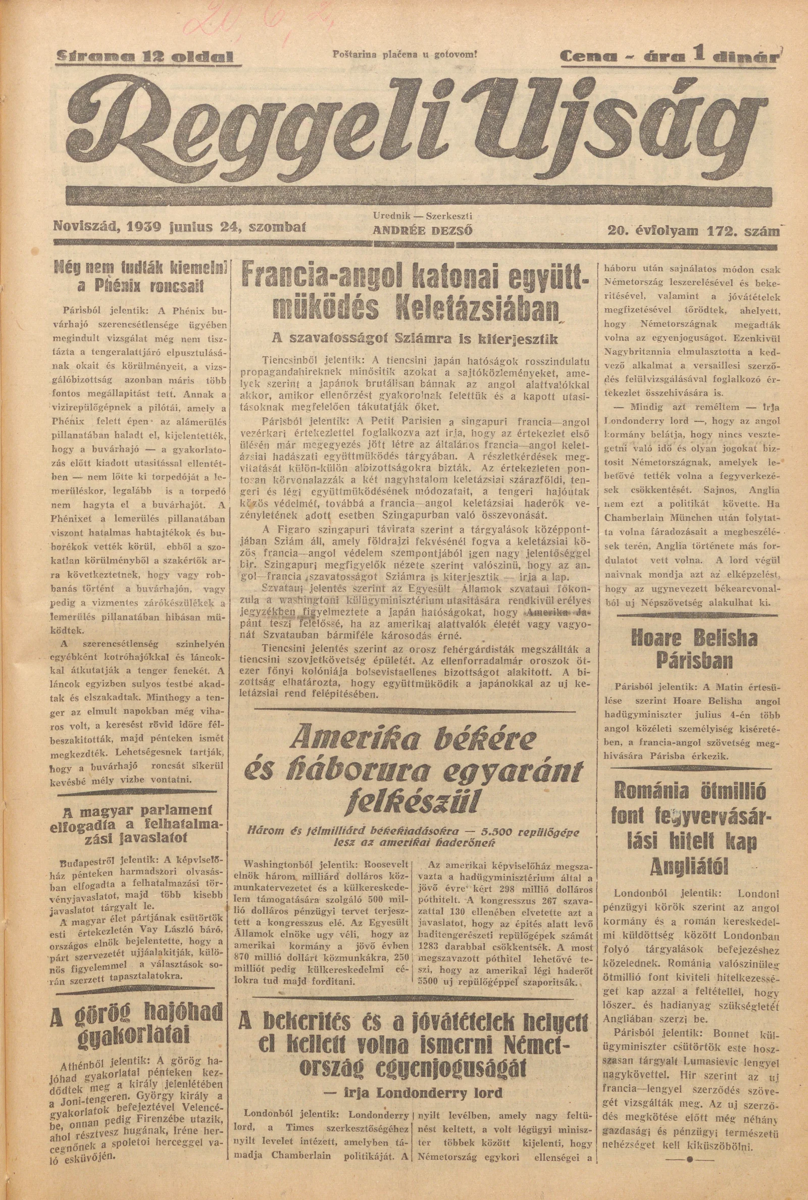 Reggeli Újság, 20. évf. 1939. június 24. 172. sz.