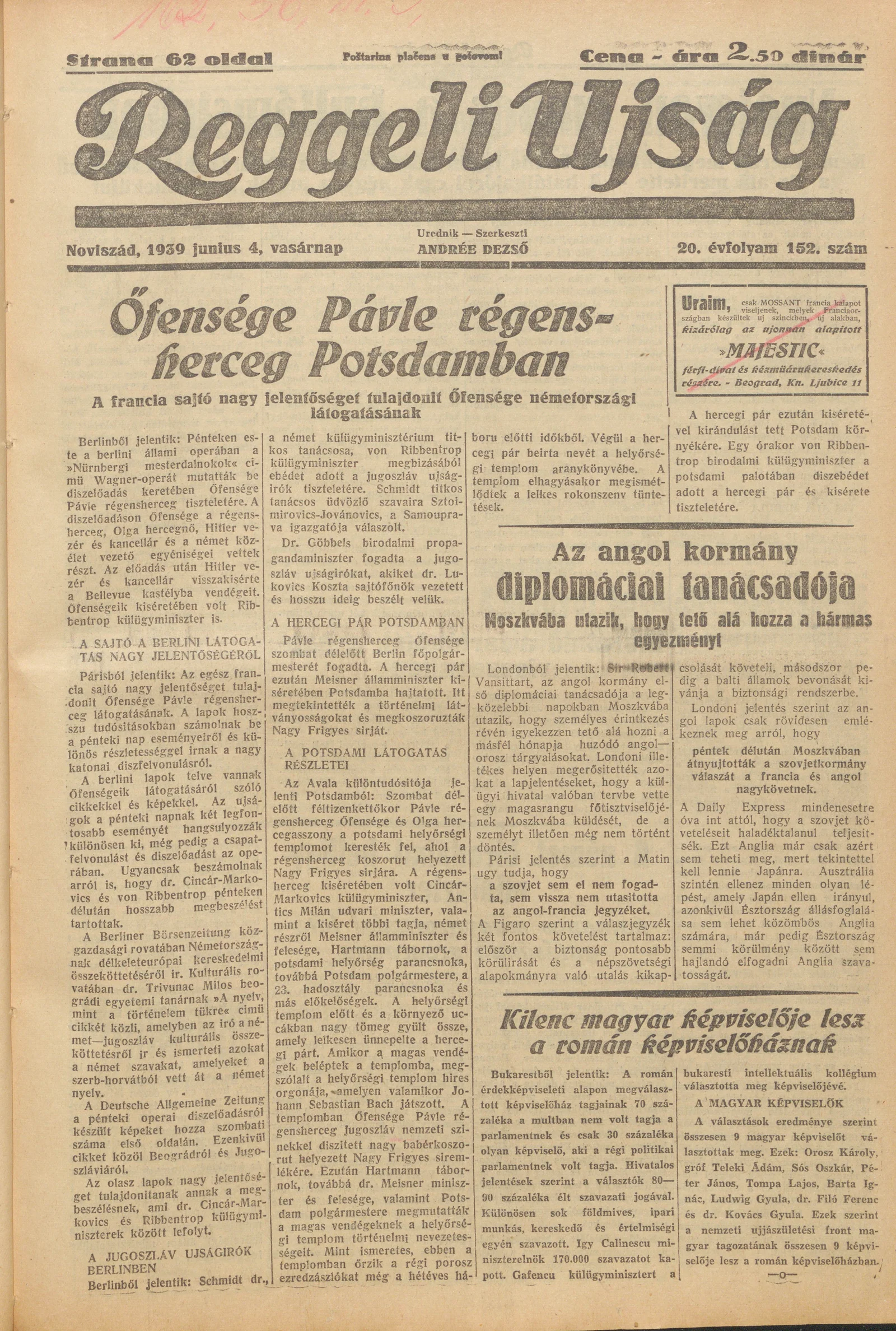 Reggeli Újság, 20. évf. 1939. június 4. 152. sz.