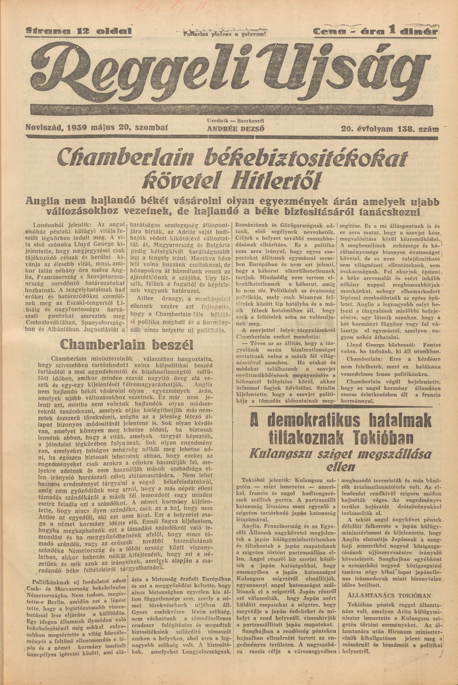 Reggeli Újság, 20. évf. 1939. május 20. 138. sz.