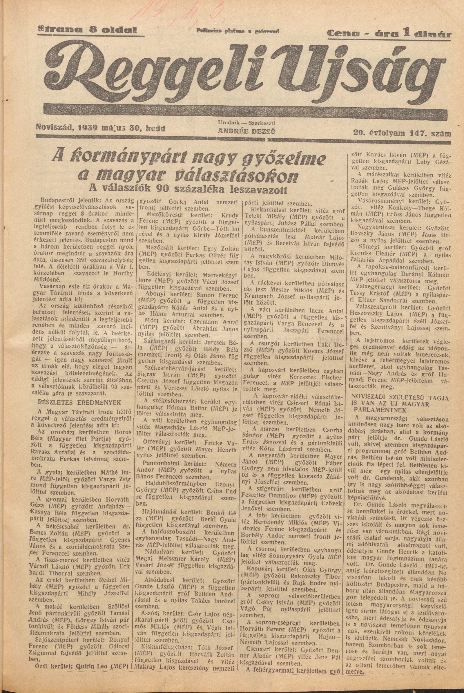 Reggeli Újság, 20. évf. 1939. május 30. 147. sz.