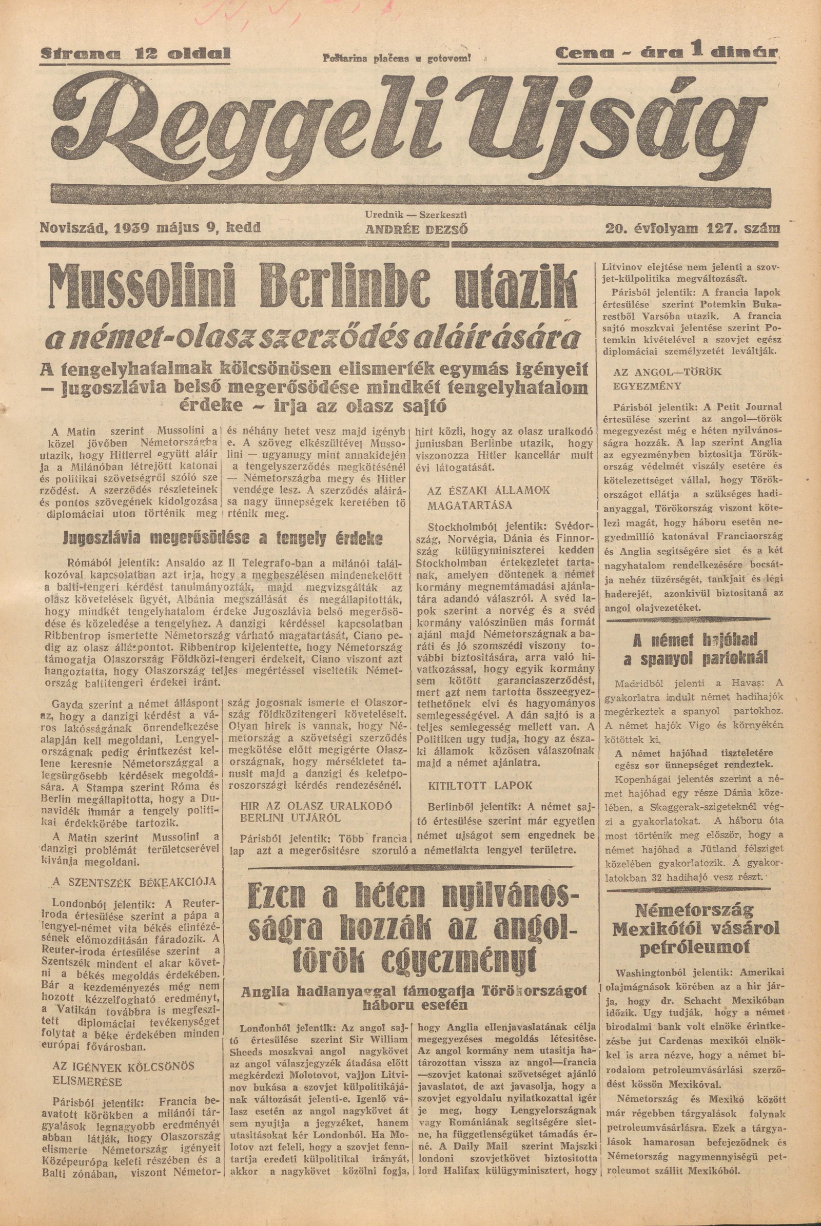 Reggeli Újság, 20. évf. 1939. május 9. 127. sz.
