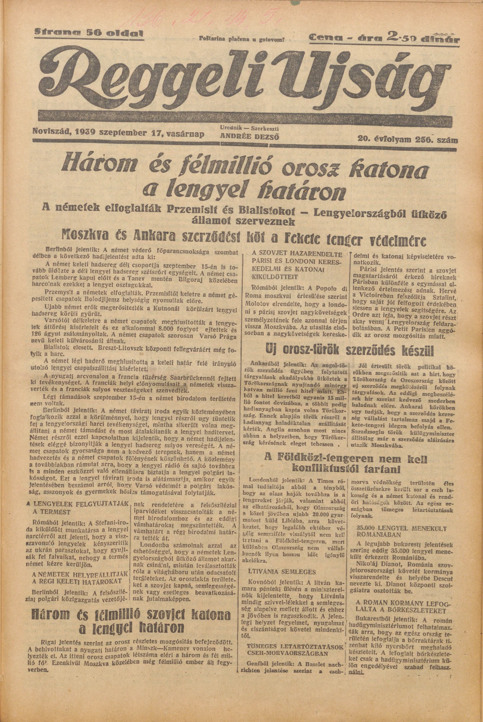 Reggeli Újság, 20. évf. 1939. szeptember 17. 256. sz.