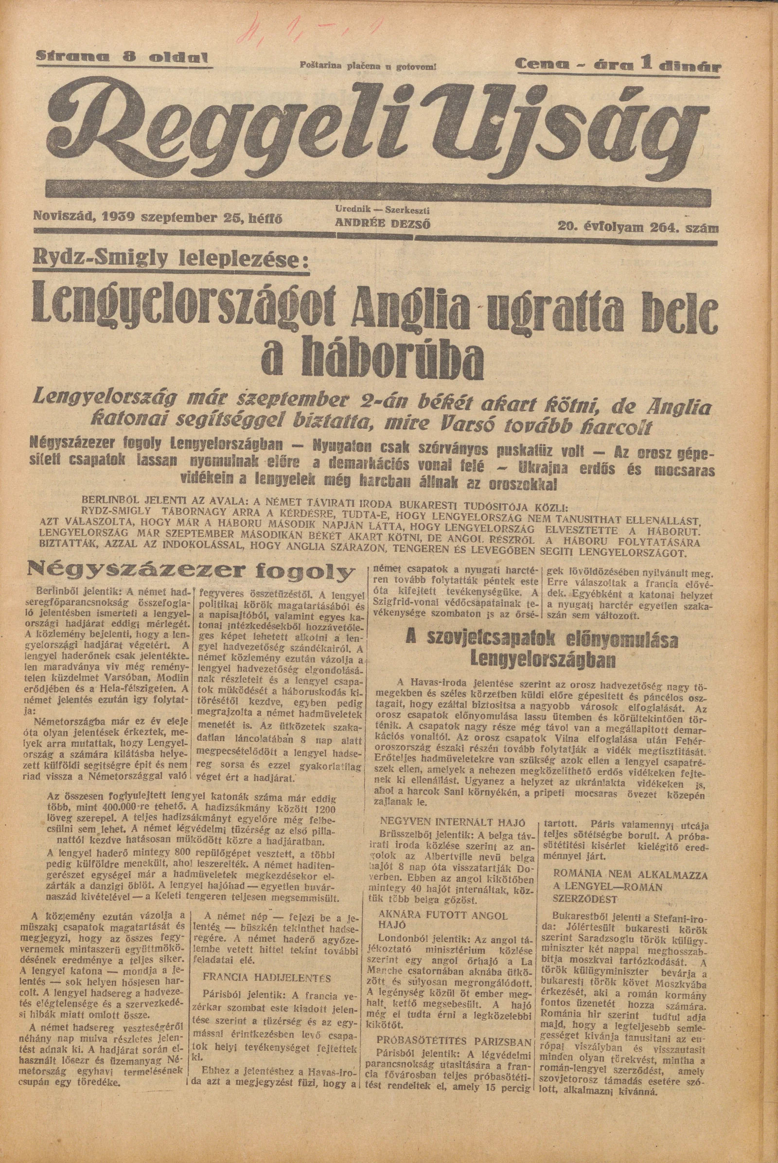 Reggeli Újság, 20. évf. 1939. szeptember 25. 264. sz.