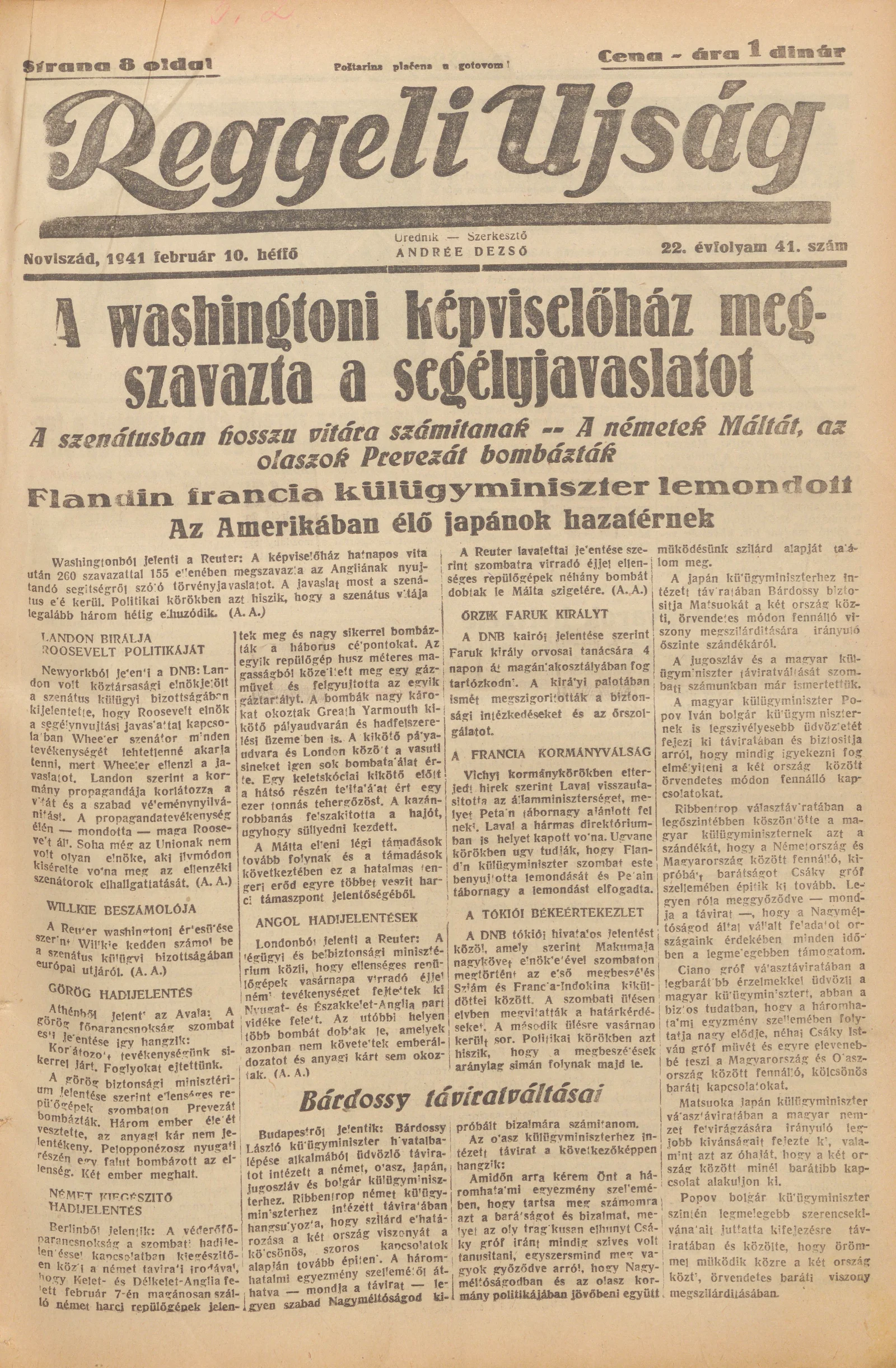 Reggeli Újság, 22. évf. 1941. február 10. 41. sz.