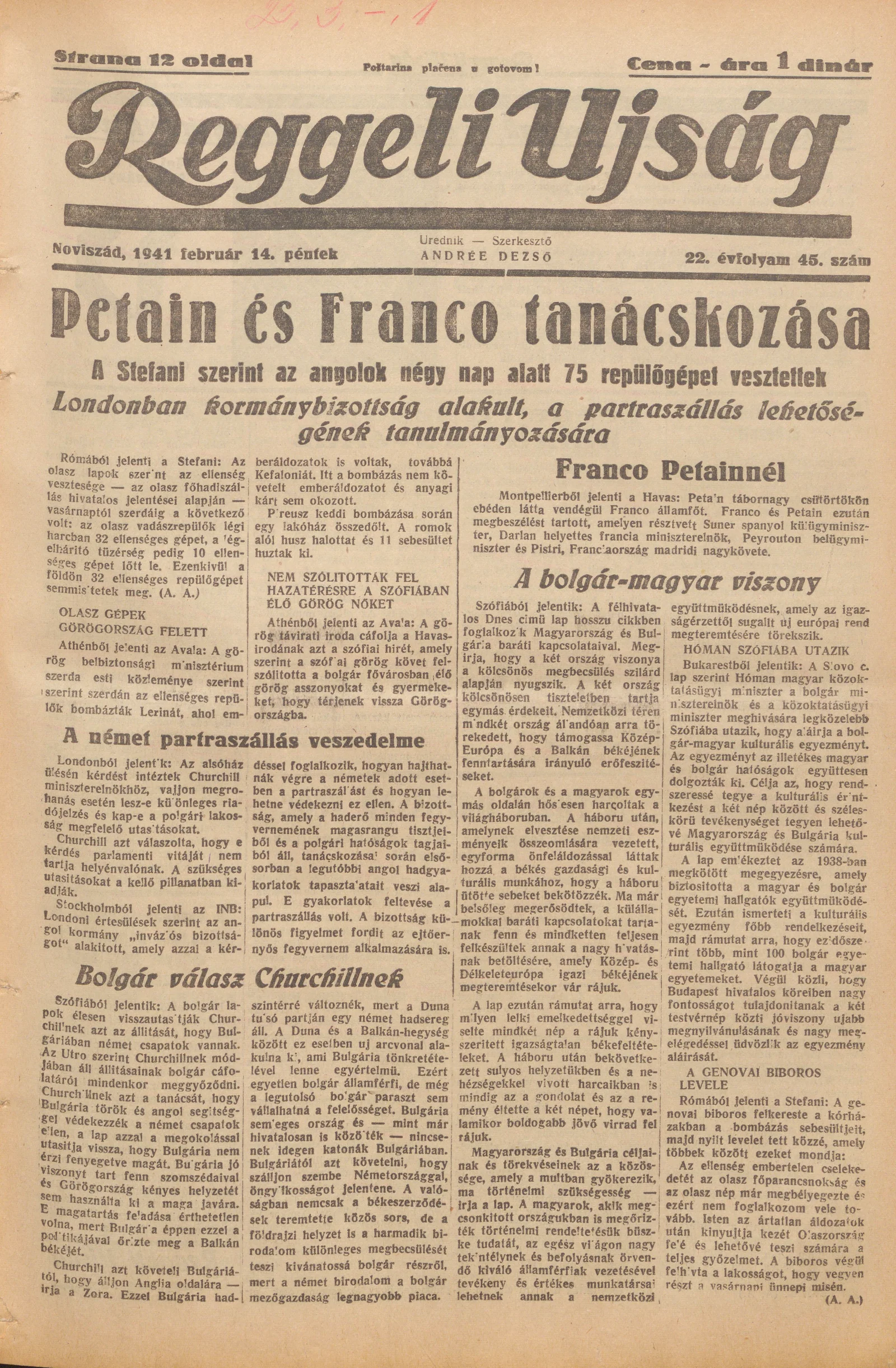 Reggeli Újság, 22. évf. 1941. február 14. 45. sz.